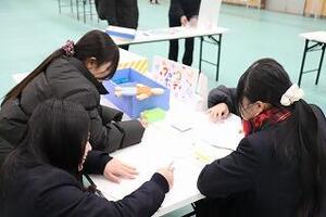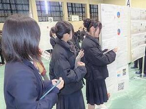 「総合的な探究の時間」発表会では、ポスターセッションに加えて代表発表者の発表や実演を行いました。