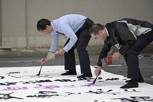 校長と副校長も参加し、観客生徒・書道部とともに楽しく盛り上がりました。