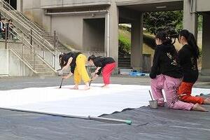 本日は、昨日・一昨日の吹奏楽部・フォークソング部に続き、書道部がパフォーマンスを行いました。
