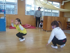 今日、にじ組はいろいろな動物になりきっておはなしあそびを楽しみました。体をいっぱいに動かし、それぞれ自分のイメージしている動きや鳴き声を表現していました。それぞれの動物が得意技を披露するなどして盛り上がっていました。