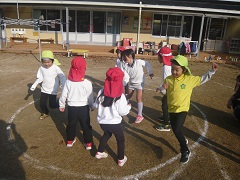 今日も天気がよく暖かい日でした。子どもたちは外遊びに出るとさっそく誘い合って転がしドッジやドッジボールなどを楽しんでいました。当たらないように上手によけたり、ねらいを定めてボールを転がしたり投げたりしていました。