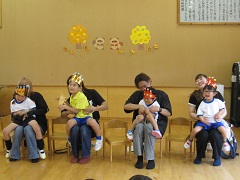 今日の出来事 10月お誕生会(2025.10.15) 10月生まれのお友達のお祝いをしました。前に出て自分の名前や何歳になったかを照れくさそうにしながらも、それぞれ言っていました。お友達からの質問に答えたり、お家の方から、いろんなお話を聞かせてもらったりした後は、親子で楽しいふれあい遊びをし... 2025.10.15 今日の出来事