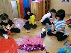 今日の出来事 アイドル活動楽しんでいます!(2025.10.16) 雨ふりのため、芋掘りには出かけることができず残念でしたが、お部屋でのあそびをたっぷり遊びました。そら組ではアイドルユニットが誕生し、今日は衣装づくりが盛り上がっていました。「リボンつけたいなあ。」とイメージを膨らませてつくっていました。た... 2025.10.16 今日の出来事