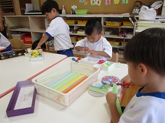 今日の出来事 何入れようかな〜。(2025.10.20) ほし組ではピクニックごっこが盛り上がってきています。野菜を切ってカップに入れたり、おにぎりや梅干しを丸めたりしていろいろなおがずを詰めたお弁当をつくっています。「次は何入れようかな〜。」「できたらお外で食べよう!」とワクワクが膨らんでいま... 2025.10.20 今日の出来事