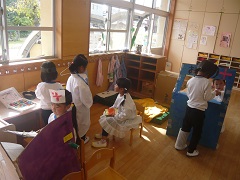 今日の出来事 どこが痛いですか?(2025.11.12) 今日もにじ組病院にはたくさんの患者さんが来ています。「どこが痛いですか?」「お熱があるので入院してください。」などやり取りを楽しみ病院ごっこをしていました。救急車も出動し、病院は大忙しでした。明日はどんな患者さんが来るのかな? 2025.11.12 今日の出来事