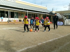 今日の出来事 サッカー教室がありました。(2025.12.10) 京都サンガF.Cのコーチ2名に来ていただきサッカーを教えてもらいました。サンガのユニフォームを着て少し緊張した表情を見せていた子どもたちでしたが、動き始めるとサッカーの面白さに引き込まれ夢中になってボールを追いかけていました。2チームに分... 2025.12.10 今日の出来事