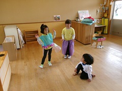 今日の出来事 アイドルごっこ(2026.03.19) 昨日、そら組さんが修了し、少し淋しい幼稚園でした。今日は1年間ずっと楽しんできたアイドルごっこを楽しんでいました。ドレスを着ていろいろな曲で踊り、「楽しかった〜!」「もっといっぱい踊りたい!」という声もたくさん聞こえていました。 2026.03.19 今日の出来事