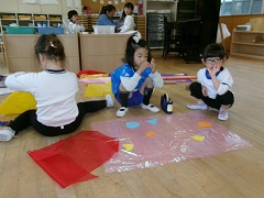 今日の出来事 ドレスづくり始まっています。(2026.04.10) 昨年度もアイドルごっこを楽しんでいた子どもたち。「またドレスつくりた〜い。」とドレスづくりが始まっています。ドレスの色や形を考え「どうしようかな?」「こんな感じにしようかな?」とイメージしながらつくっています。少しつくり進めると、鏡に写し... 2026.04.10 今日の出来事