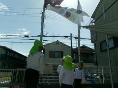 今日の出来事 こいのぼりをあげました。(2026.04.20) そら組の大きなこいのぼりが完成しました。子どもたちがつくったうろこが鮮やかでかわいいこいのぼりです。今日はクラス全員でこいのぼりをあげました。あげた直後は風が弱く泳いでいなかったこいのぼりでしたが、「風邪吹いて〜!」という子どもたちの声が... 2026.04.20 今日の出来事