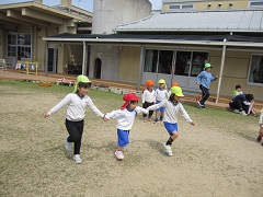 ほし組のお友達が入園して1週間が達ました。外では砂場やボール遊びを一緒に楽しんだり、3、4、5歳のお友達が自然に交流を楽しんだりする姿がみられるようになってきました。今日の歓迎会ではほし組1人1人のお名前を教えてもらい、その後みんなで子どもたちに大人気の『ぴよぴよ行進曲』を楽しみました。一緒に手をつないだり顔を見合わせて笑い合ったり、微笑ましい光景があちらこちらに見えて、これからの異年齢の交流が楽しみになりますね。