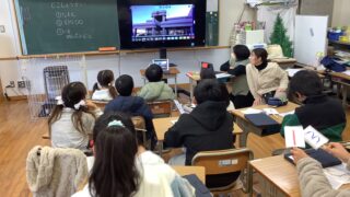 わくわく学級が、北海道釧路市立清明小学校とオンライン交流会をしました。自己紹介や学校クイズをして楽しみました。運動場でスケートをしているのに驚きました。