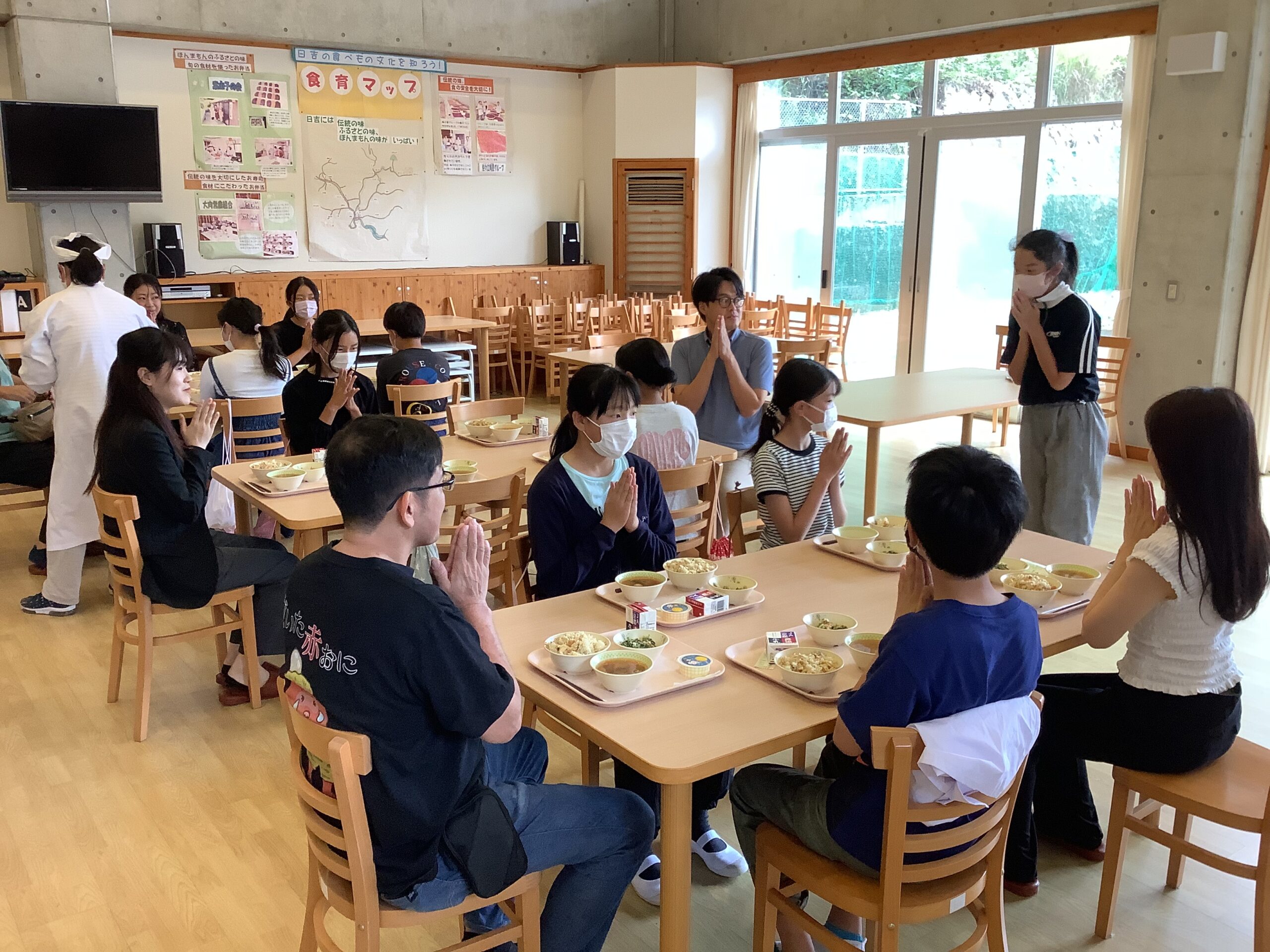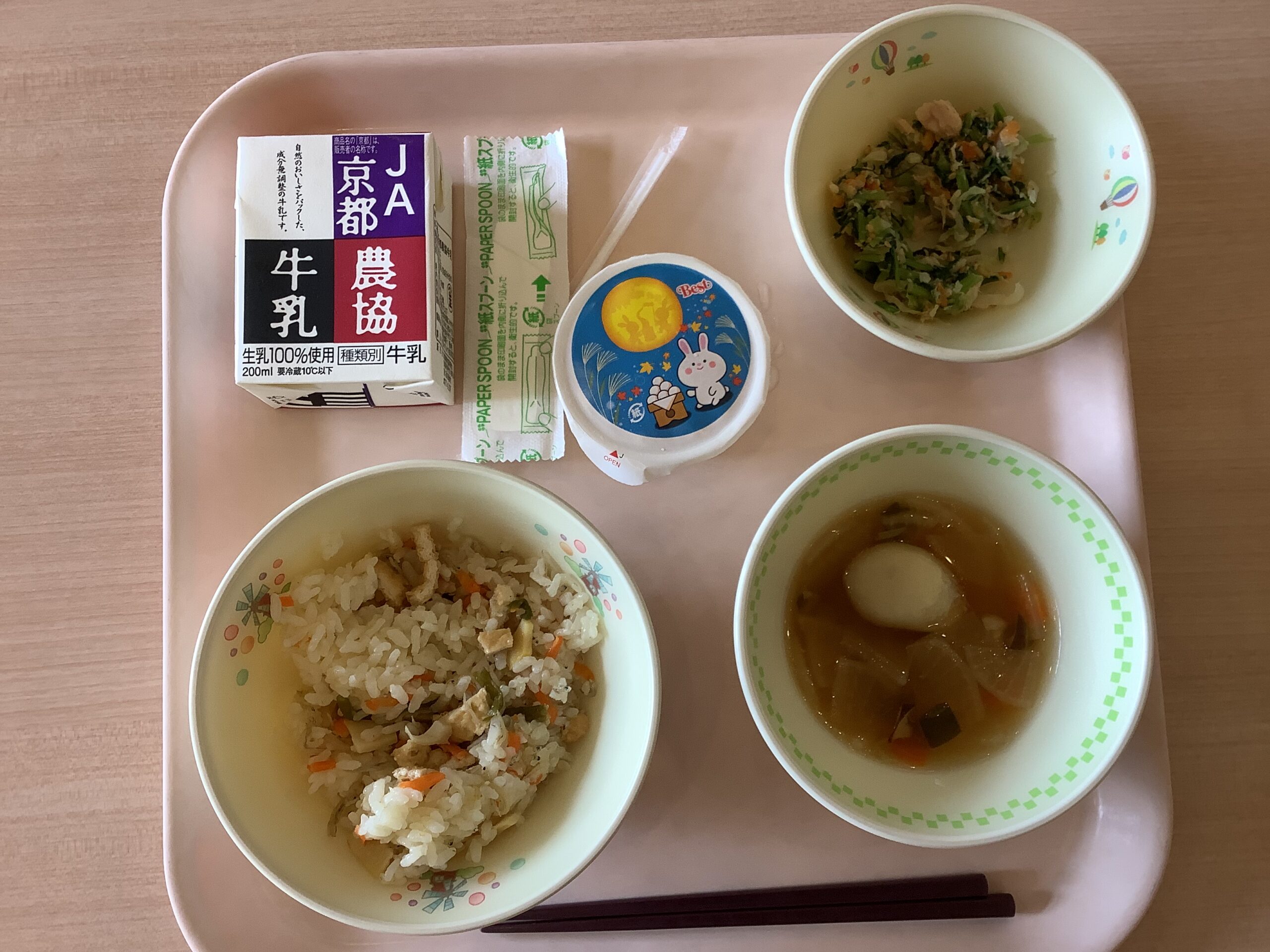 今日は、11月にある芸術鑑賞会のワークショップで「びわ湖ホール声楽アンサンブル」の皆さんに来ていただきました。校歌を歌っていただいたり、オペラでいろいろな曲を聴かせていただきました。また、お月見給食を6年生と食べてもらいました。本番が楽しみです。