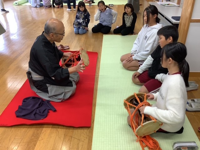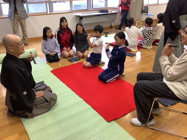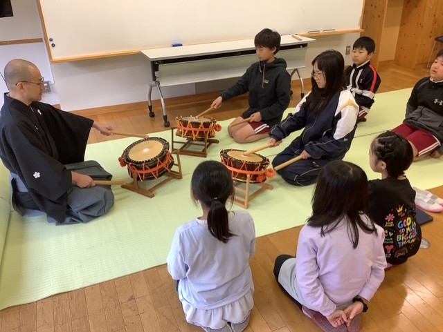 10日(月)には能の和楽器の先生方に来ていただき、3・5・6年生が笛・小鼓・大鼓・太鼓を体験しました。本物の和楽器にふれる貴重な学びとなりました。また、3年生は発表会に向けて練習したり録音したりもしました。発表会は、12月11日(木)の予定です。