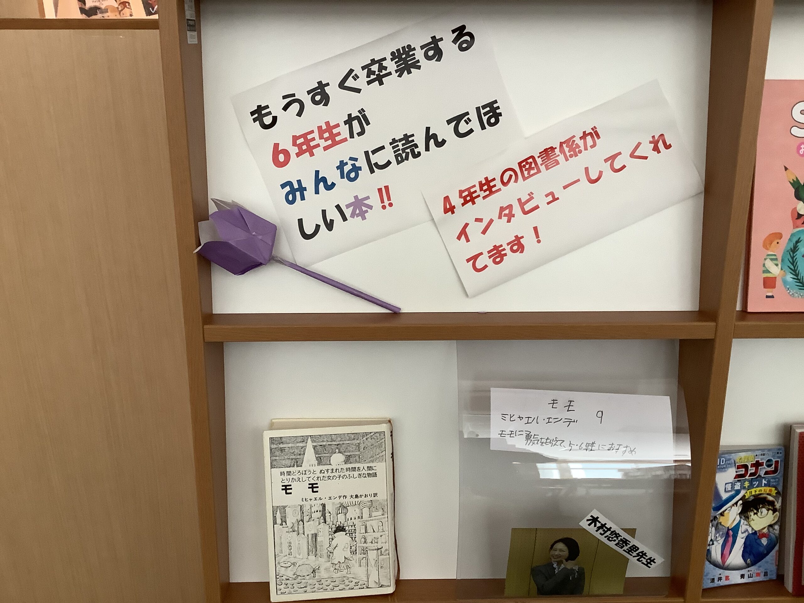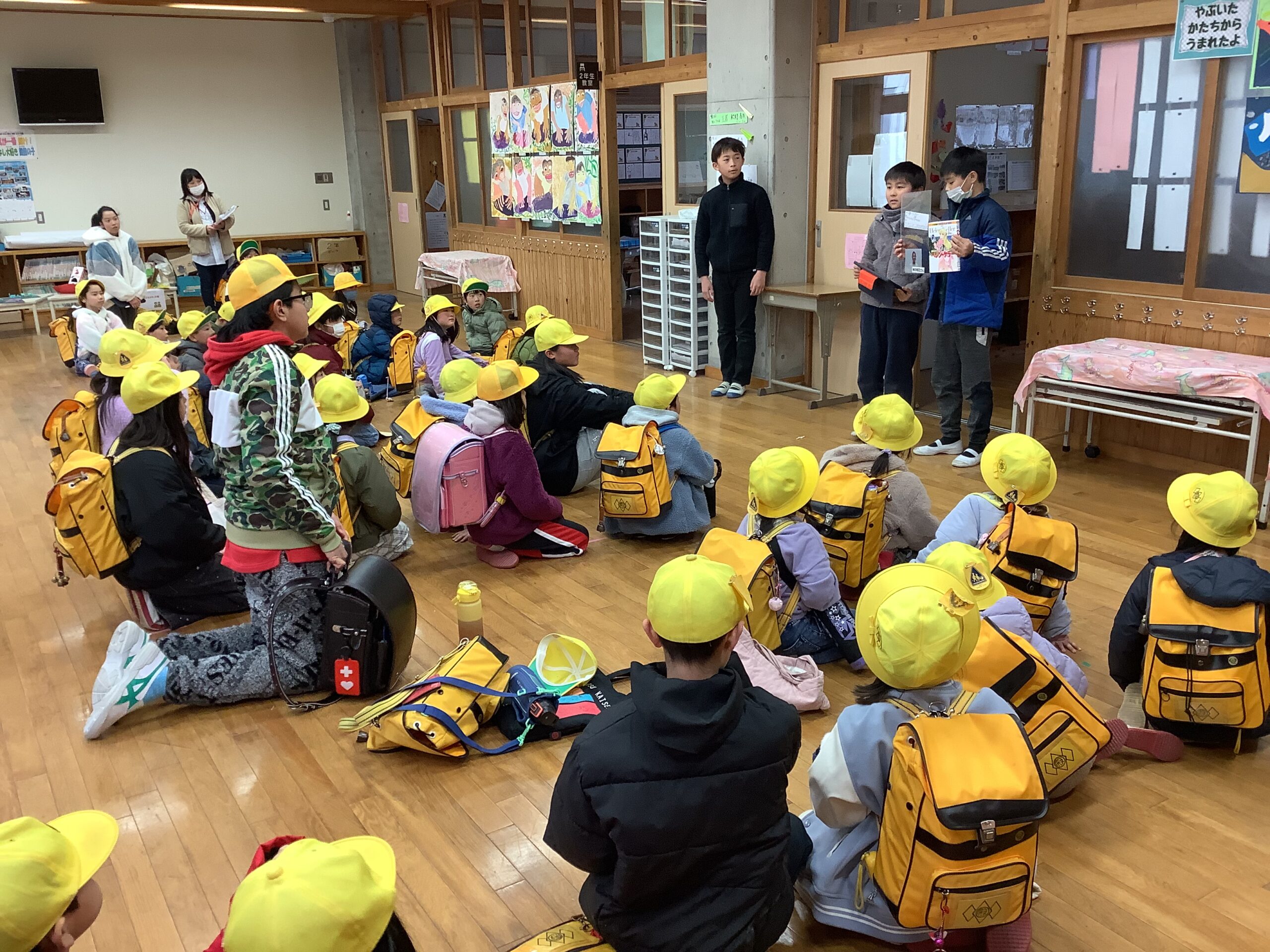 とのだっ子日記12日(木)の下校集会では、2つの取組の紹介がありました。1つ目は、4年生からの@「6年生のおすすめの本」です。図書室に行くと、6年生のおすすめの本が並んでいます。2つ目は、図書委員会からの「ラッピングブック」のお知らせでした。これも各学年の多目的室に置いてありました。どんな本に出会えるか…楽しみですね。