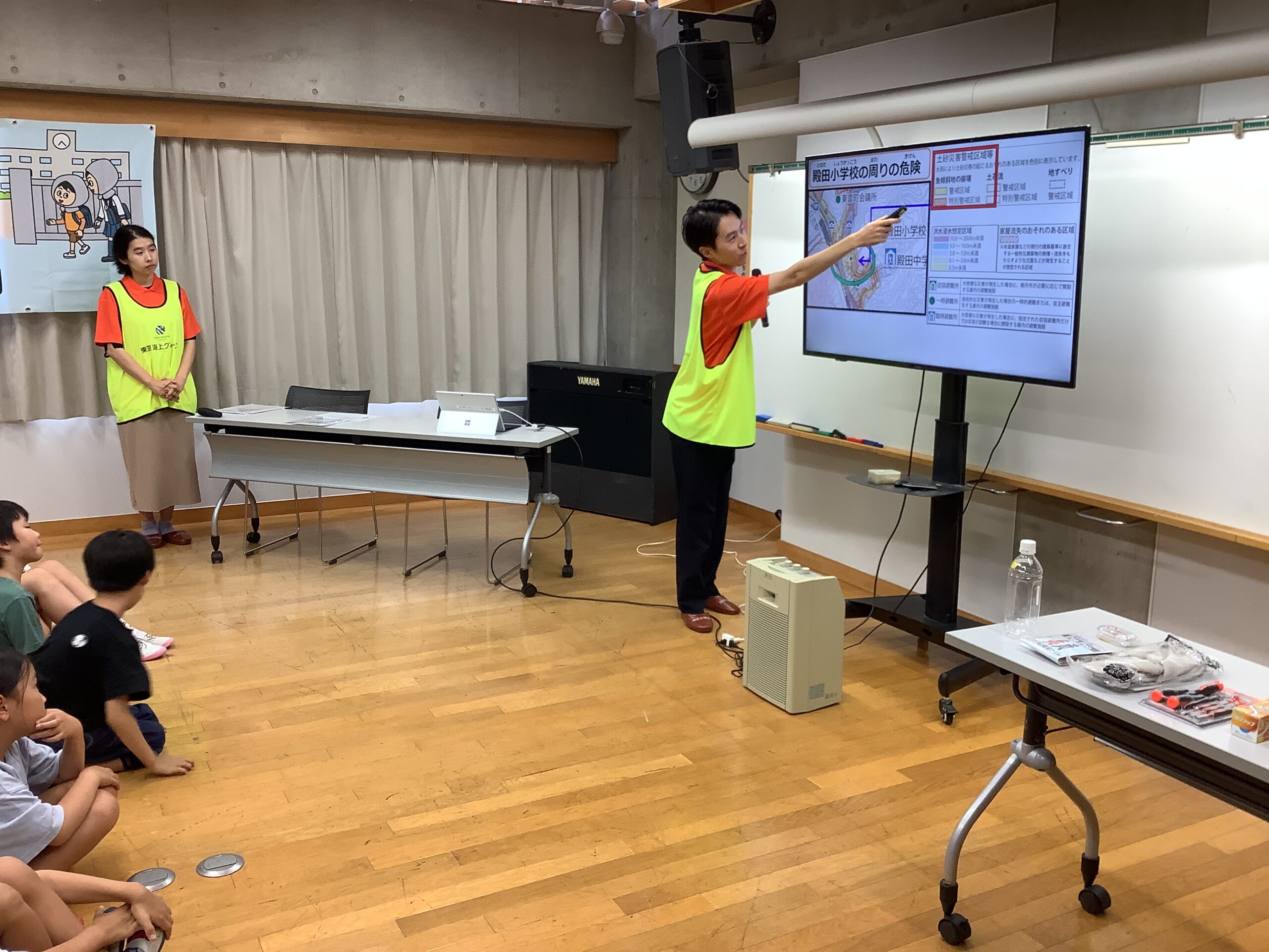 次に、講師の方から土砂災害や洪水について教えてもらい、みんなで避難所でできることを話し合いました。27日(土)には「防災イベント」があります。いろいろなブースを計画していますので、是非ともご参観ください。