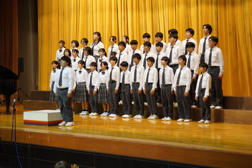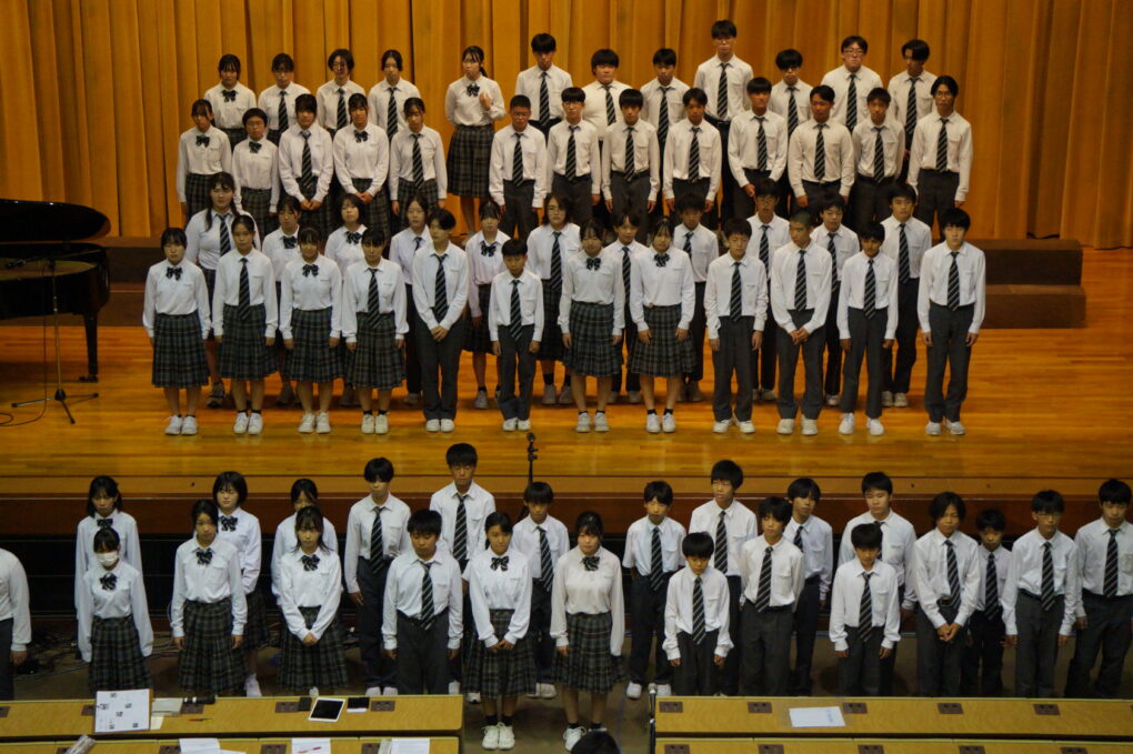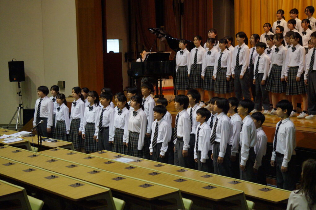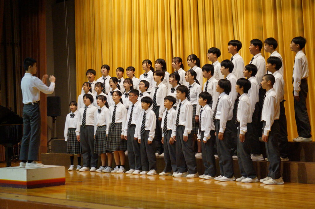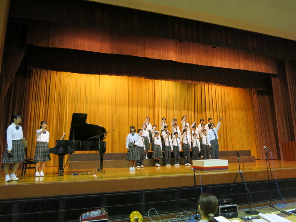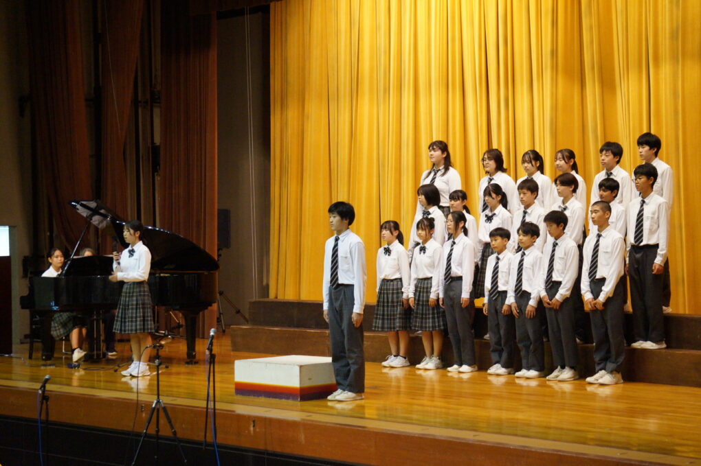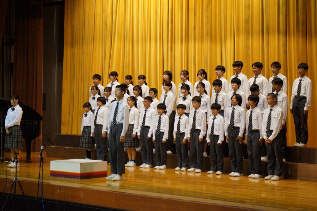 合唱コンクールでは、赤ブロックが最優秀賞に輝きました。でも、赤・青両ブロックともそれぞれも持ち味が十分に発揮され、聴き手の心に訴えかける発表でした。学年合唱も、それぞれのクラスで練習に励んできた様子がよくわかる歌声となりました。