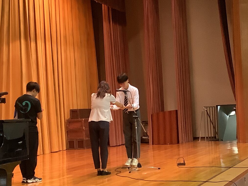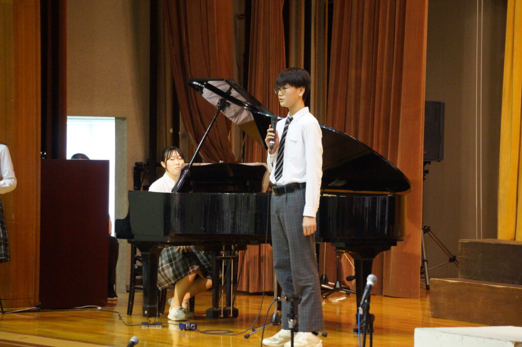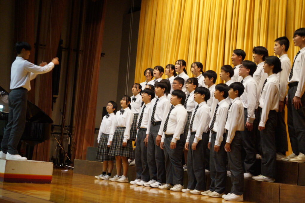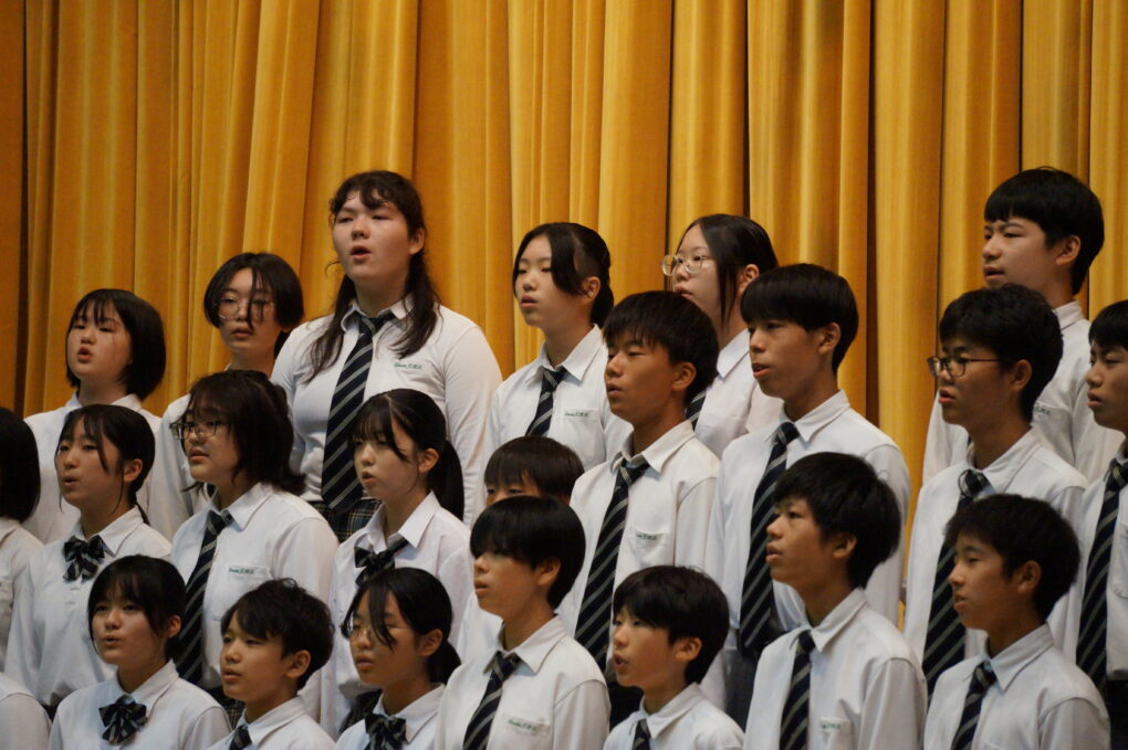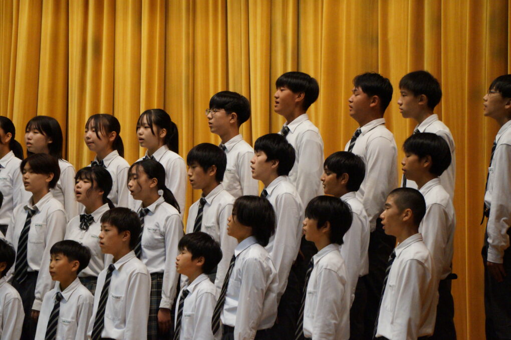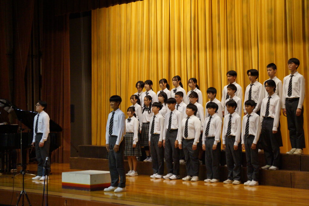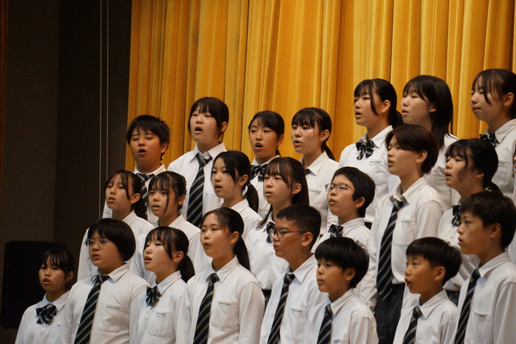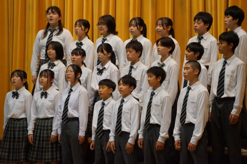 9月25日(木)、明治国際医療大学講堂にて文化祭を開催しました。今回の文化祭は、本当に多くの方々の温かいご支援で開催することができています。立派な講堂を使わせていただいたこと、吹奏楽部の演奏に加わり支えていいただいた方、昼休みの時間に素敵な歌声を聞かせていただいた方、生徒たちが歌いやすように、歌声が響きやすいようにずっと音響の調整をしてくださった方、そして殿田小学校と胡麻郷小学校の児童の皆さんや保護者・地域の方々など、当日ご来場いただき、大きな拍手を送ってくださった皆さん。生徒たちは、多くの方々の思いに触れ、大切な人に向けて、思いをかけてくださった皆さんに向けて、精一杯発表していました。本当にありがとうございました。