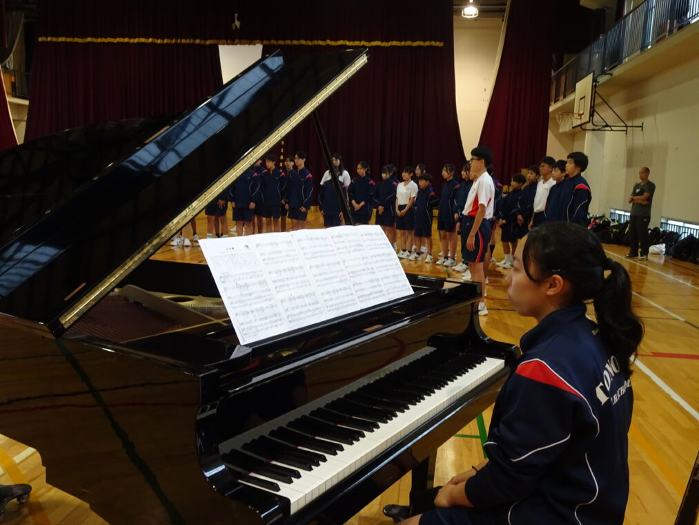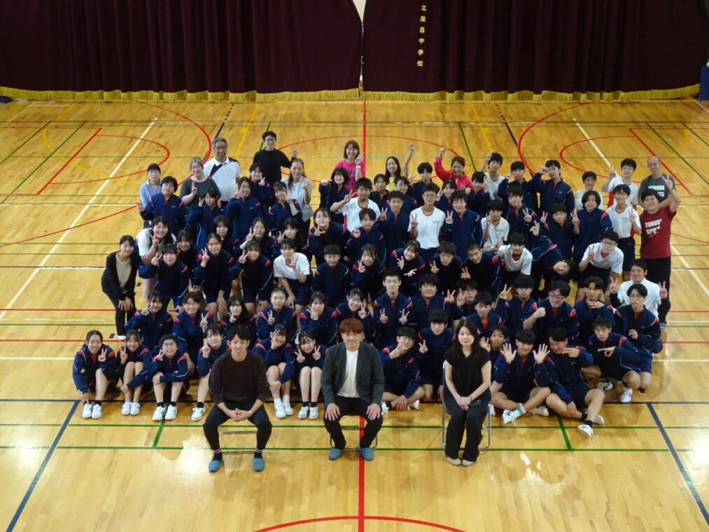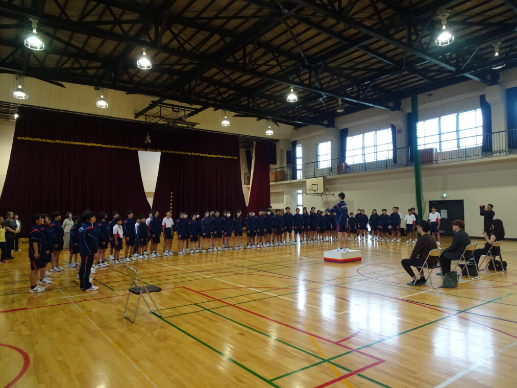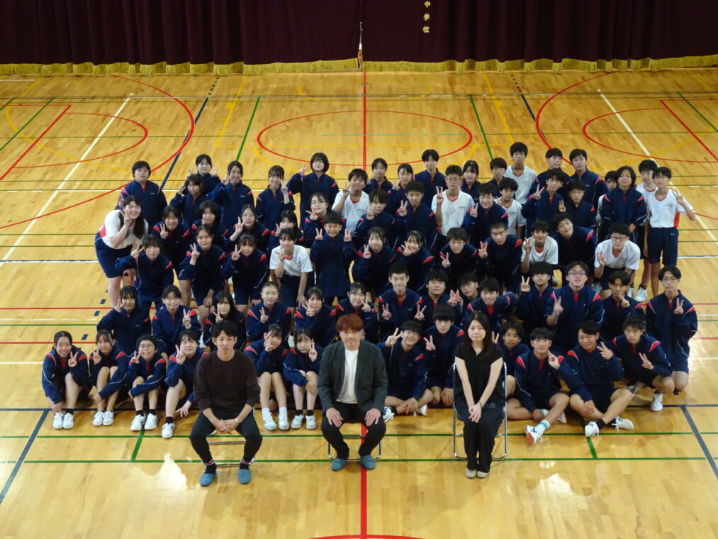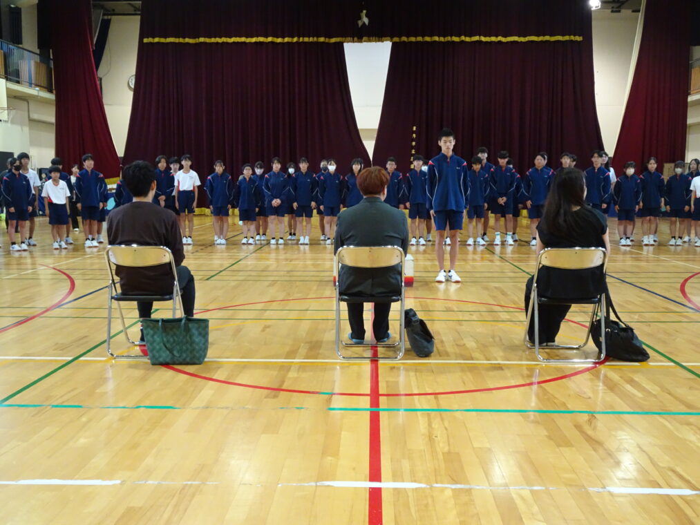 当日は、あいにくの雨で体育祭は中止となりましたが、鴻野さん、佐々木さん、金本さんにご来校いただき、体育館で感謝の合唱を行うことができました。