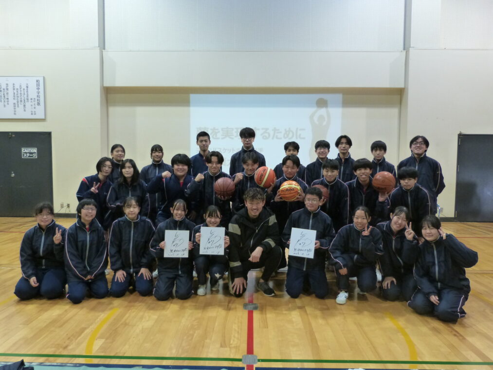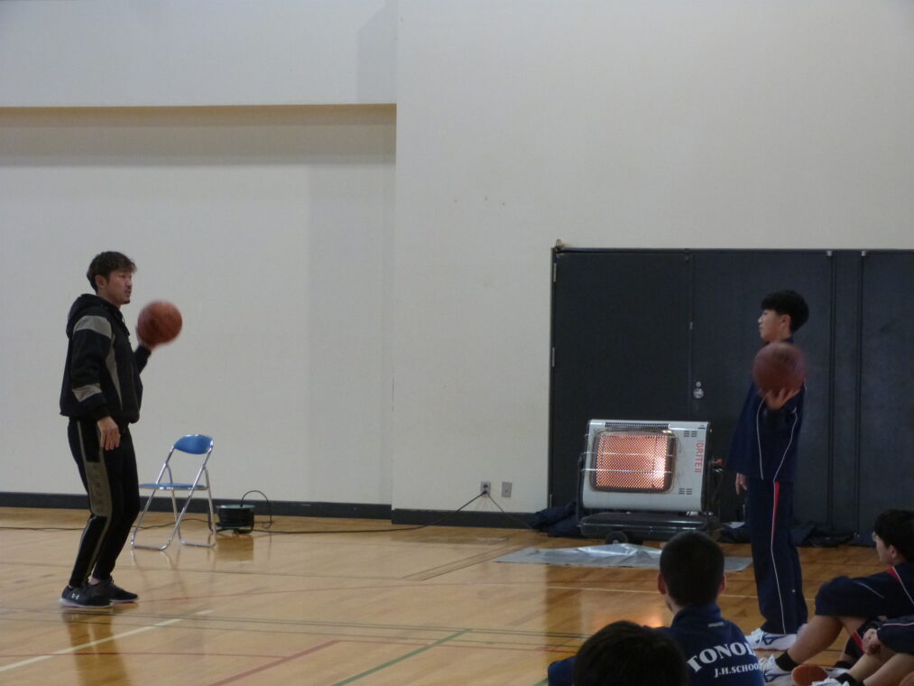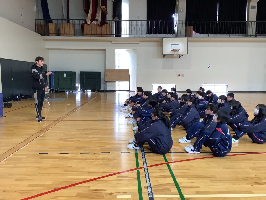 11月19日(水)、バスケットボールのプロチーム「熊本ヴォルターズ」で活躍された小林慎太郎さんにご来校いただき、3年生には実技指導、全校生徒には講話をお世話になりました。