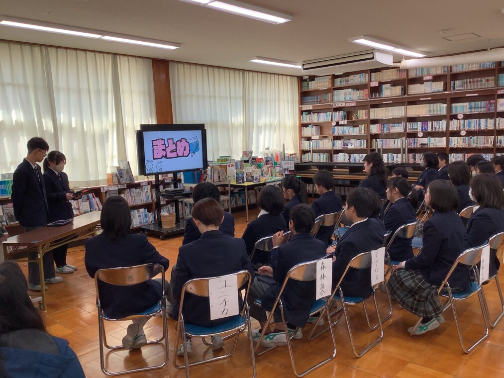 12月4日(木)、2年生が職場体験学習を通じて学んだこと、日吉の未来について考えた事を発表しました。当日は、お世話になった事業所の皆さんや、この間、学習の支援をしてくださっていた龍谷大学の学生さんたちにも来ていただきました。