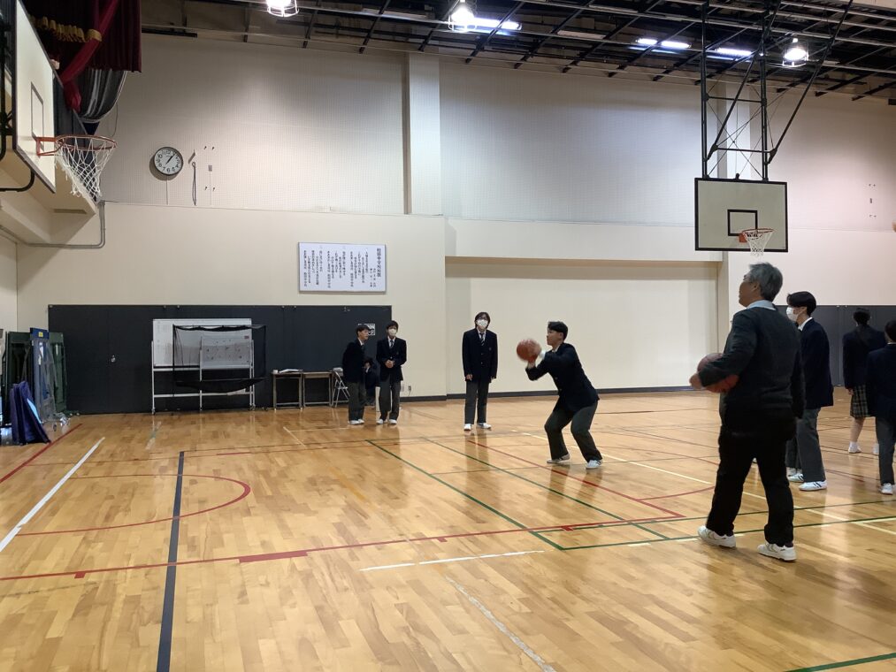 生徒会体育部主催の「フリースロー大会」。エントリーした生徒と教職員が昼休みの体育館に集まって行っています。応援の生徒も含めて、昼休みの体育館は熱気を帯びています。「最近の中で一番緊張した」という教職員の声も。学年を越えて声援を送りあう生徒たちの姿が楽しいです。