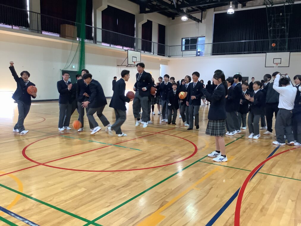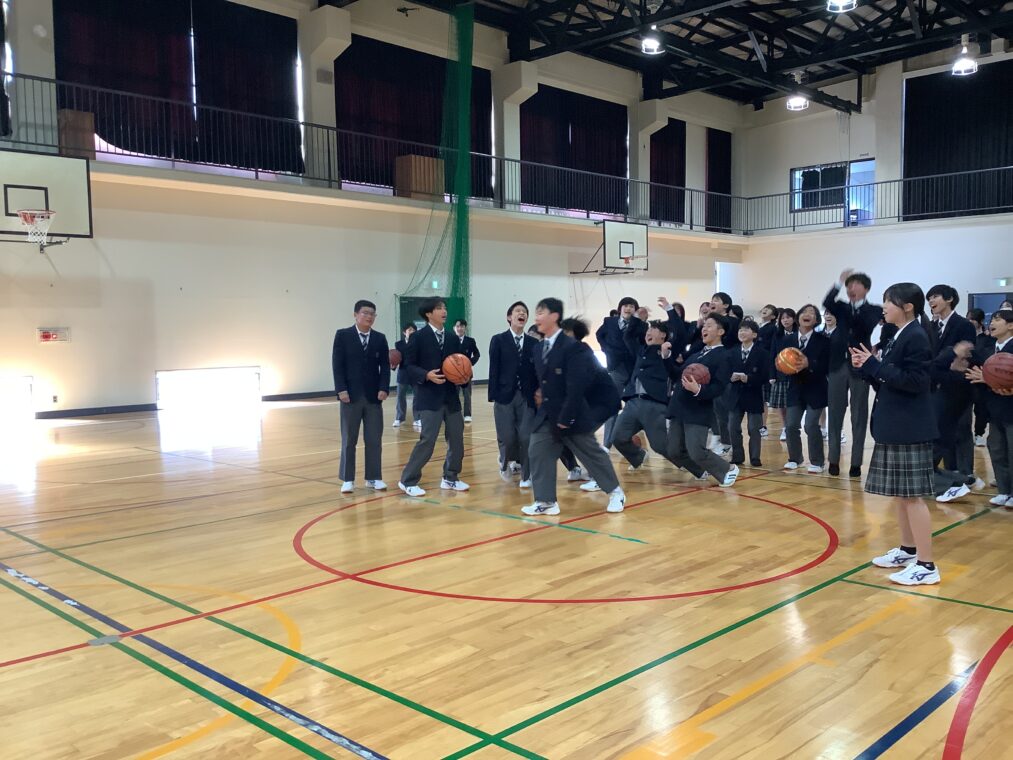 令和7年度生徒会体育部主催の「フリースロー大会」。エントリーした生徒と教職員が昼休みの体育館に集まって行っています。応援の生徒も含めて、昼休みの体育館は熱気を帯びています。「最近の中で一番緊張した」という教職員の声も。学年を越えて声援を送りあう生徒たちの姿が楽しいです。