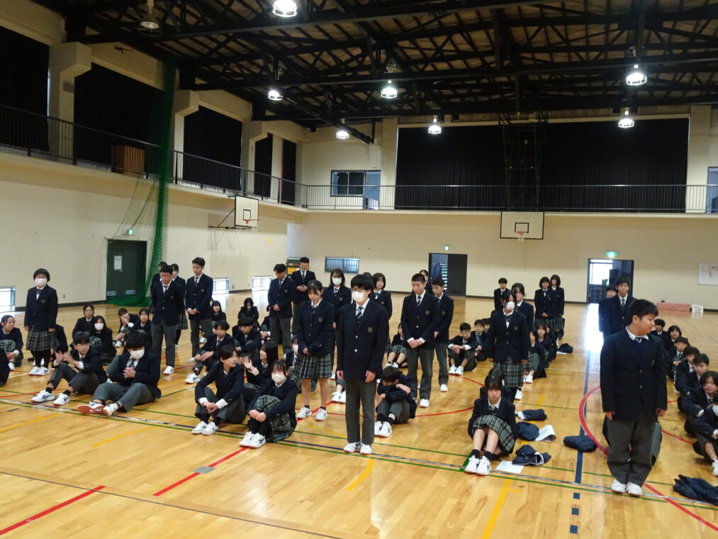 校長からは、3学期を次の年度の準備期間として、一人ひとりの頑張りで集団の力を高め、お互いに支え合うことができる殿中生であってほしいことと、この冬休みは、ご家族との時間を大切にしてほしいということを話しました。生徒指導担当からも、一人ひとりを大切にすることの意味を改めて伝え、3学期に元気な顔を見せて欲しいという願いを語りました。