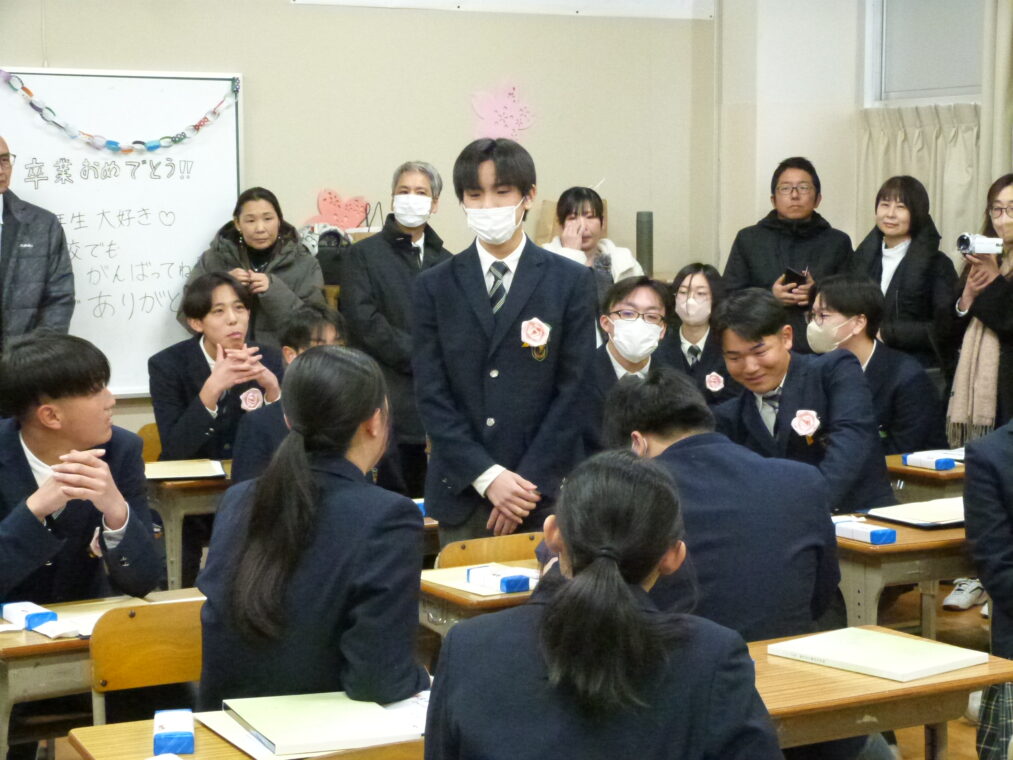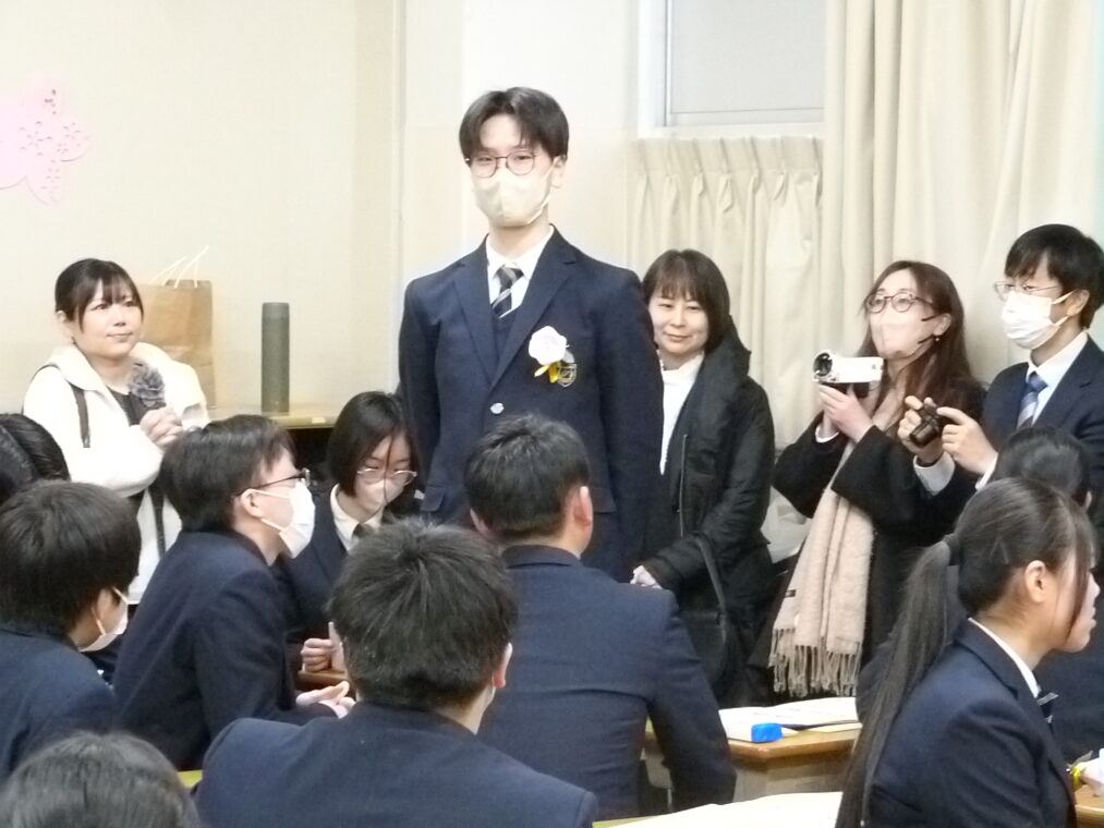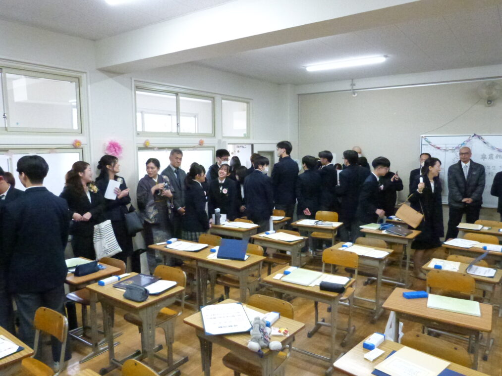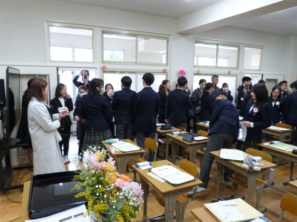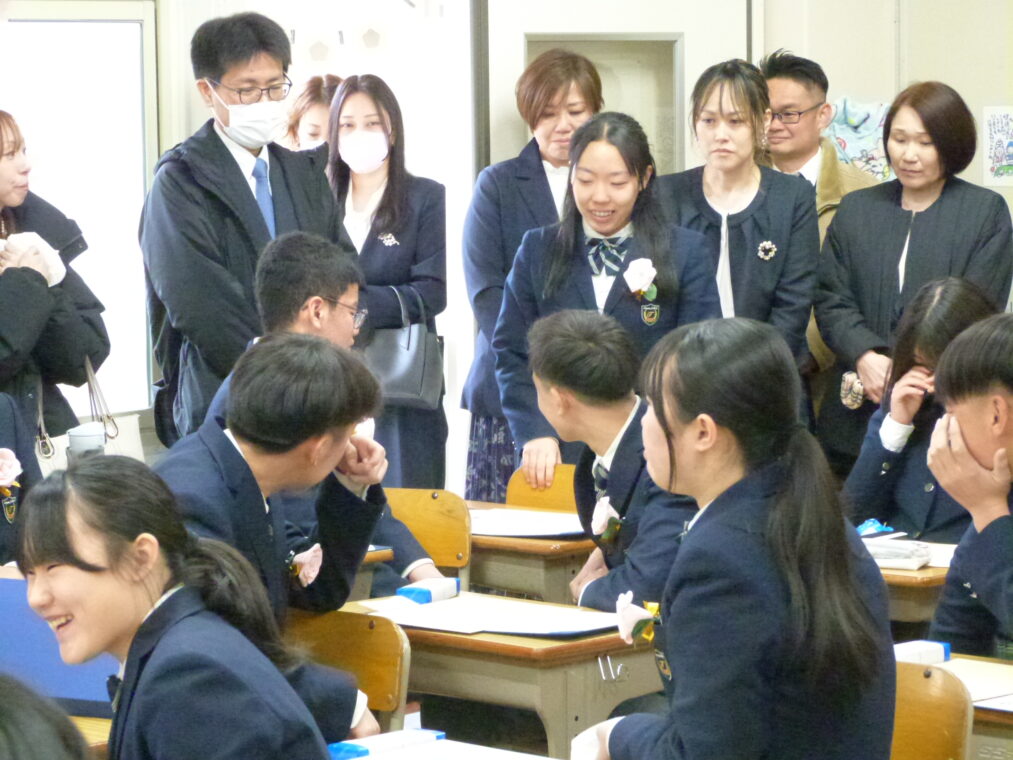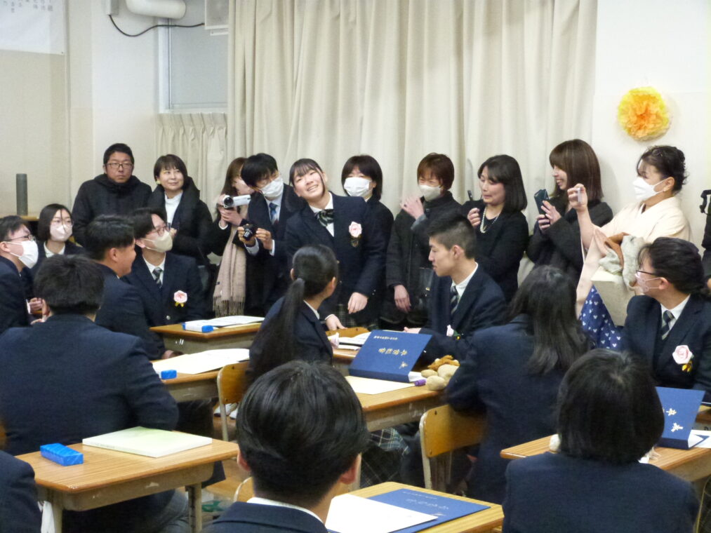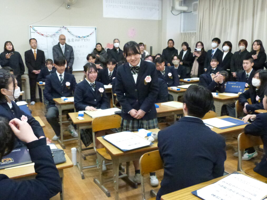 在校生代表の送辞には「これから先輩方の教えを思い出して成長していきたいと思います。そして、殿田中学校をますます活気のある学校にしていけるよう精進していきます。今まで私たちを支えてくださり、ありがとうございました。」という感謝と決意のメッセージが込められていました。また、卒業生代表の答辞は、3年生らしい「気づき」にあふれる内容でした。一つひとつの経験や、仲間との触れ合いや教職員からのメッセージから多くのことを学び、それを力にしてきたことと、家族をはじめ関わってくれたすべての人たちへの感謝にあふれるものでした。答辞から式歌、そして式後の学活では、涙が自然にあふれてきて、卒業生がどれほど素敵な生活を仲間や先生とともに過ごしてきたのかが伝わってきました。これまで本当にありがとう!そして、これからもそれぞれの道で頑張ってくれることを、心から祈っています。