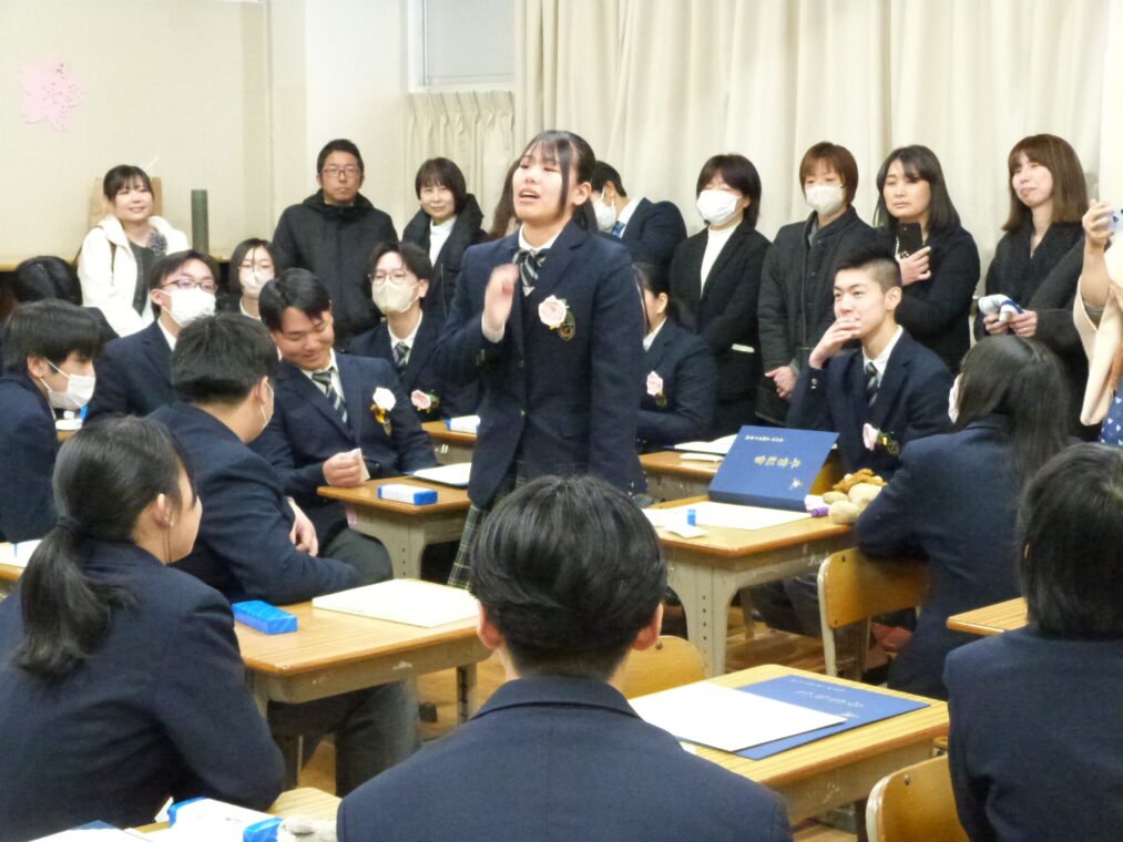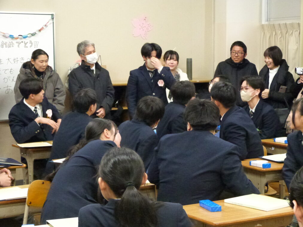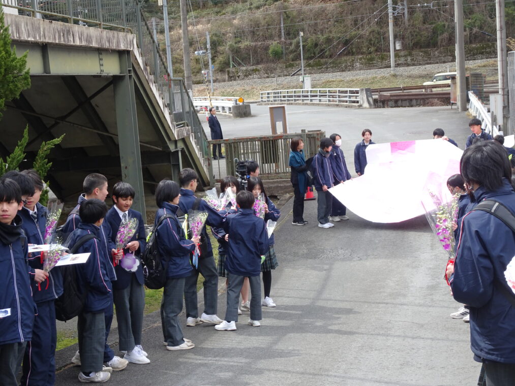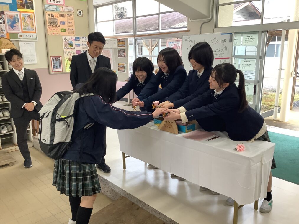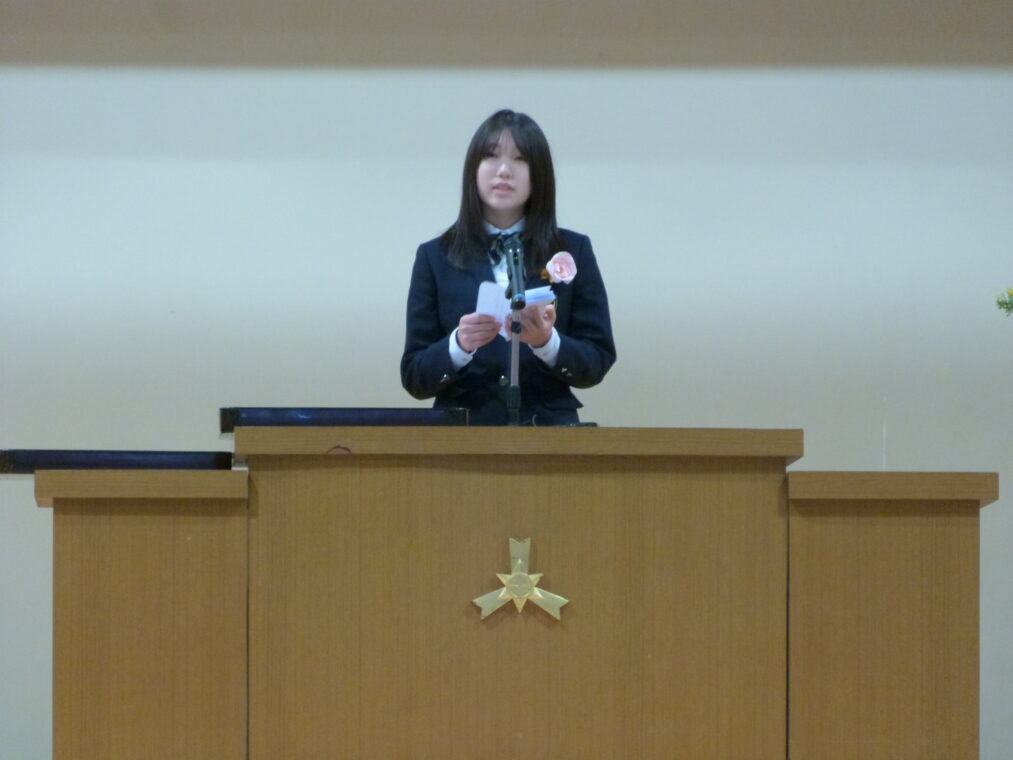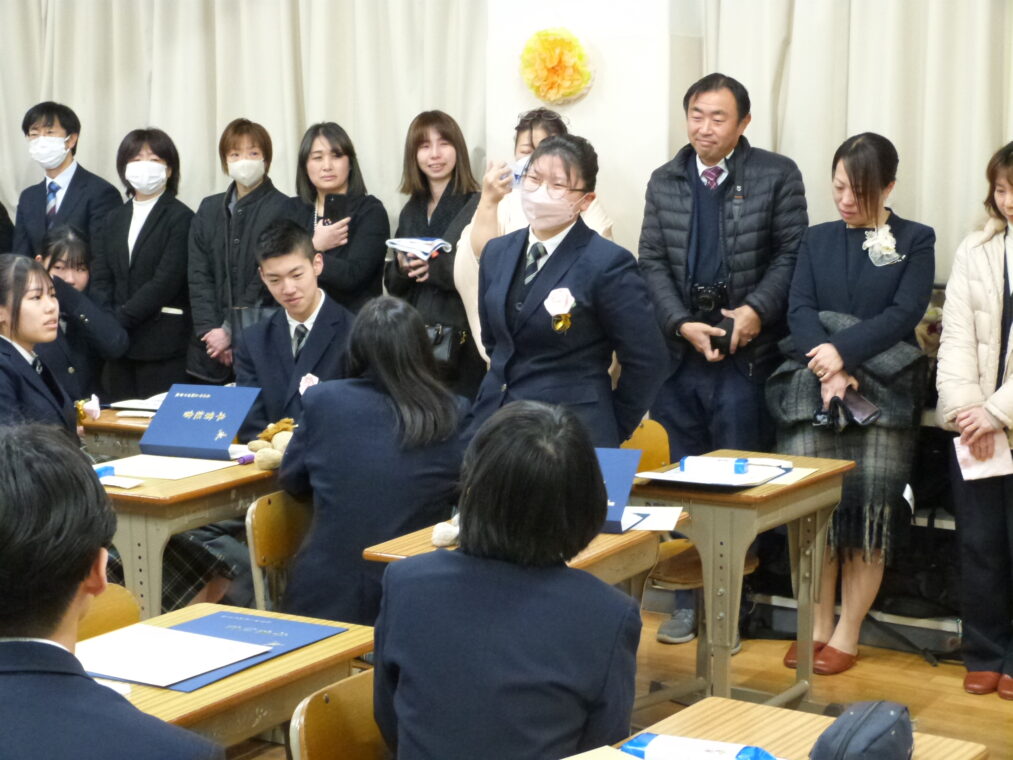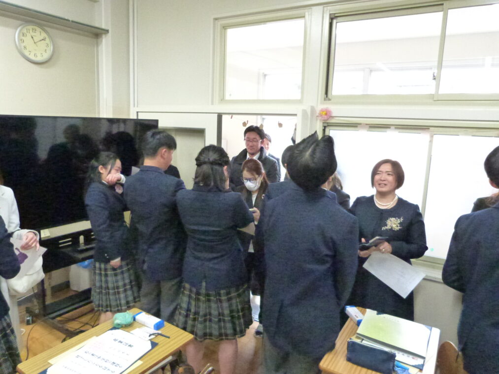 在校生代表の送辞には「これから先輩方の教えを思い出して成長していきたいと思います。そして、殿田中学校をますます活気のある学校にしていけるよう精進していきます。今まで私たちを支えてくださり、ありがとうございました。」という感謝と決意のメッセージが込められていました。また、卒業生代表の答辞は、3年生らしい「気づき」にあふれる内容でした。一つひとつの経験や、仲間との触れ合いや教職員からのメッセージから多くのことを学び、それを力にしてきたことと、家族をはじめ関わってくれたすべての人たちへの感謝にあふれるものでした。答辞から式歌、そして式後の学活では、涙が自然にあふれてきて、卒業生がどれほど素敵な生活を仲間や先生とともに過ごしてきたのかが伝わってきました。これまで本当にありがとう!そして、これからもそれぞれの道で頑張ってくれることを、心から祈っています。