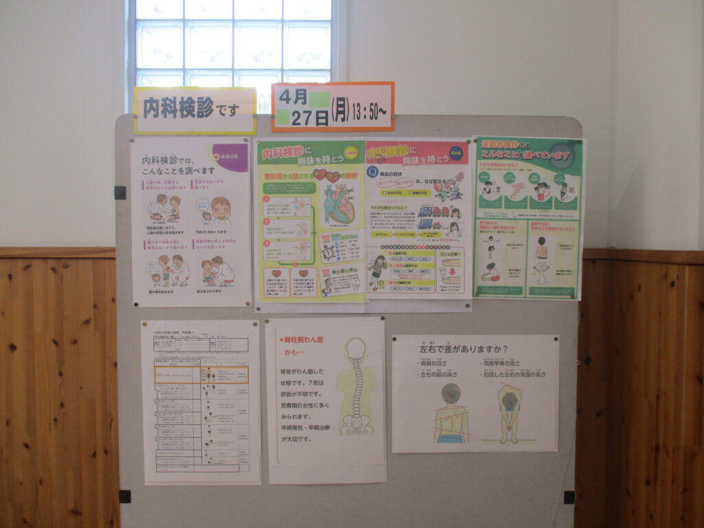 内科検診の実施に向けて、廊下に内科検診についての掲示物を設置しています。