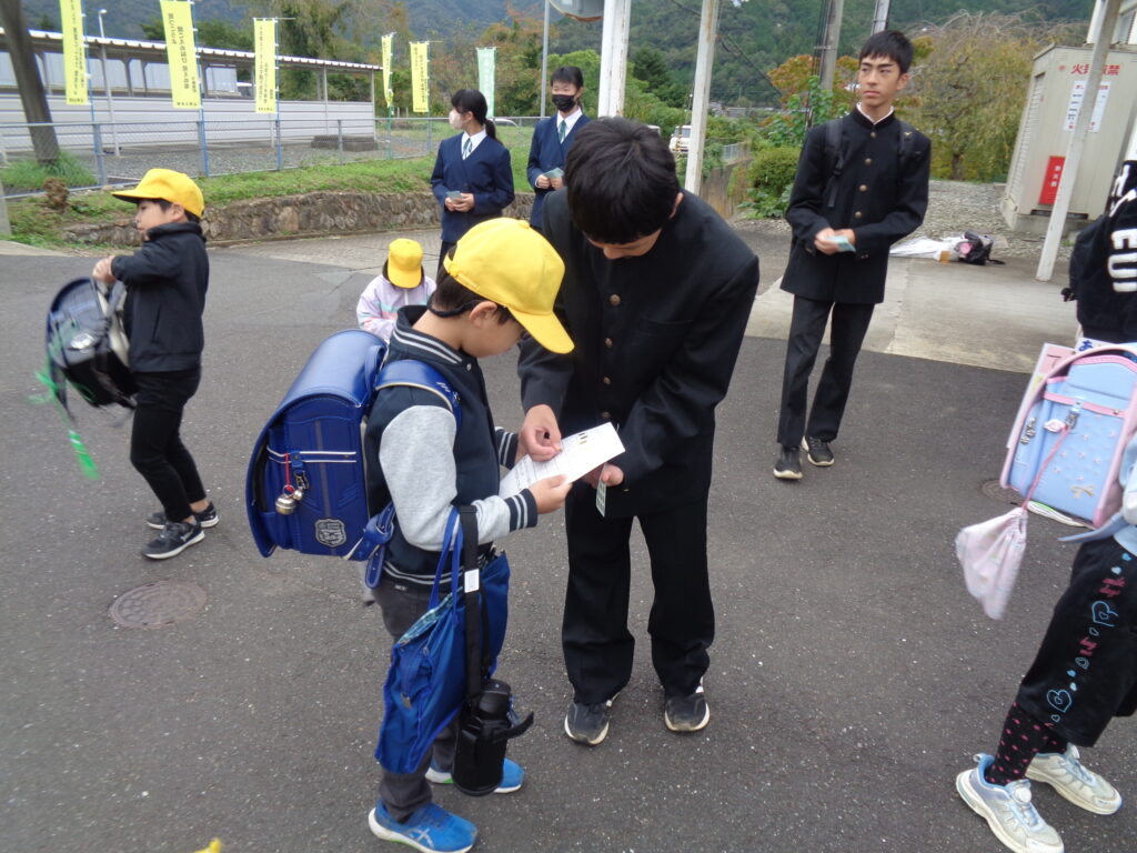 今日は生徒会・児童会のあいさつ運動でした。今週に入り、急に寒くなりましたが、元気に登校しています。