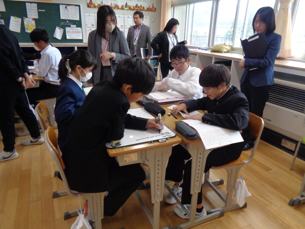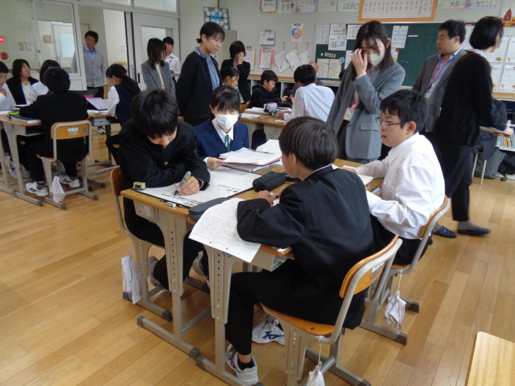 授業研究会として中1の国語科の授業公開がありました。学び合う姿勢が随所に見られました。