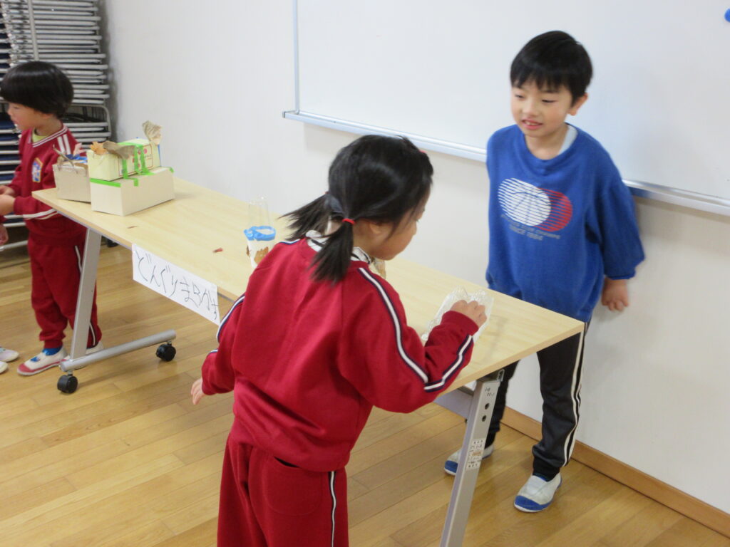 おもちゃ祭り(1年生) 投稿 2025.12.252025.12.02 綾東こども園の園児さんをお招きして、おもちゃ祭りを行いました。子どもたちが考えたおもちゃをこども園の皆さんに楽しんでもらいました。