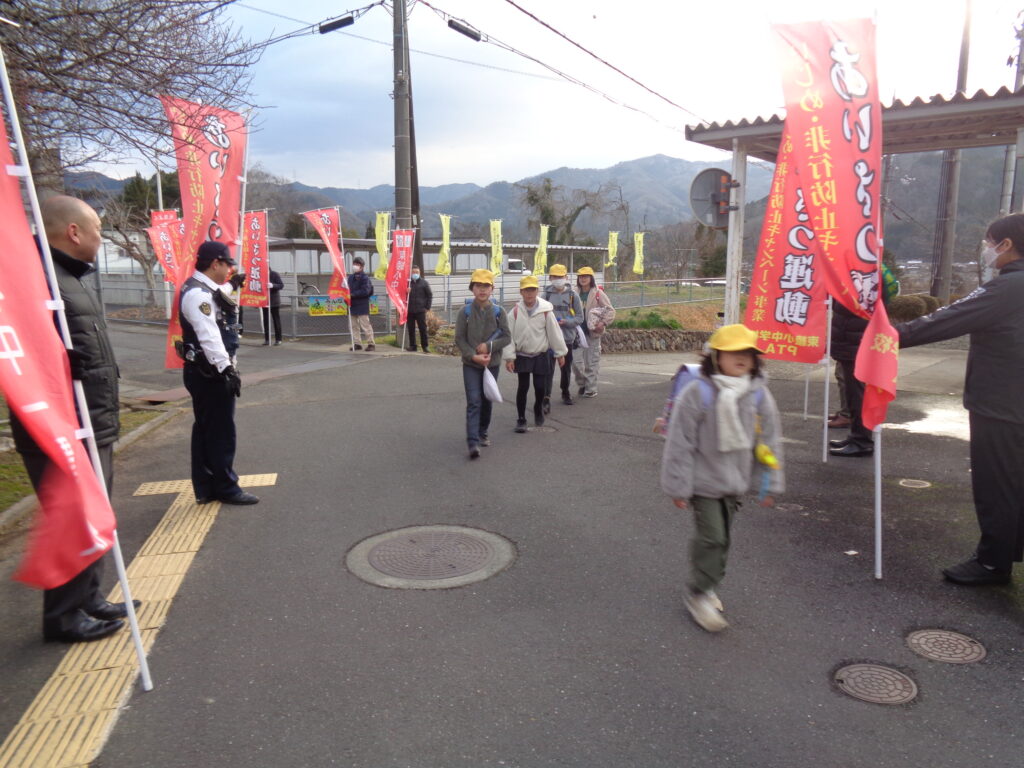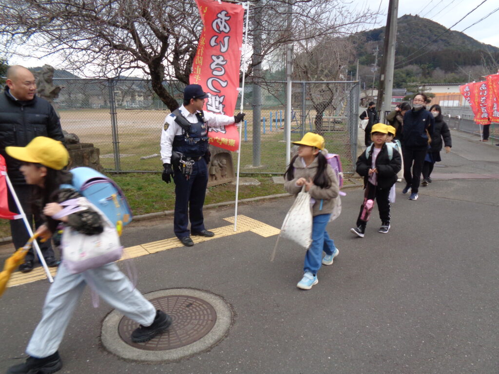 今日は3学期に入り初めてのあいさつ安全の日でした。雪が残る寒い日でしたが子どもたちは元気に登校し、大きな声で挨拶をしていました。