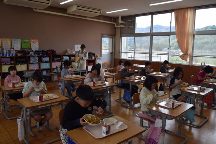 給食スタート! 投稿 2026.04.14 13日(月)より東綾小中一貫校の給食が始まりました。今年度最初の給食に、子どもたちは楽しそうな様子で給食の時間を過ごしていました。小学校1年生は初めての給食でした。今年度から自校炊飯が始まり、炊き立てのご飯をおいしくいただきました。おいしい給食ありがとうございます。