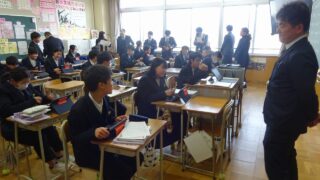 1月29日(木)1年生の家庭科では「豚汁」を作りました。野菜をさまざまな形で切るのに悪戦苦闘しました。班で協力しながら調理を進め、食事後は心も体もほっかほかで温まりました。美味しく、みんなで食べきりました。