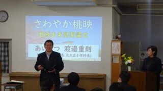 桃映中学校の取組が紹介されました! 先日紹介した、芝桜の命名式の様子を9月1日付の両丹日日新聞に取り上げてもらいました。桃映中学校の活躍をたくさんの方に知ってもらい、さらに応援してもらえる桃映中学校にしていきましょう。 ...