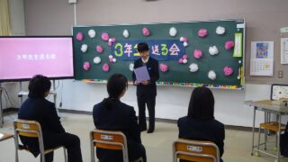 3年生送る会を行いました! 3月3日(火)4組・5組で3年生を送る会を行いました。卒業を控えた3年生のために1年生、2年生が司会や運営を行い、3年生からも今までの感謝のメッセージを送りました。3年間の思いでのスライドショーやクイズ大...