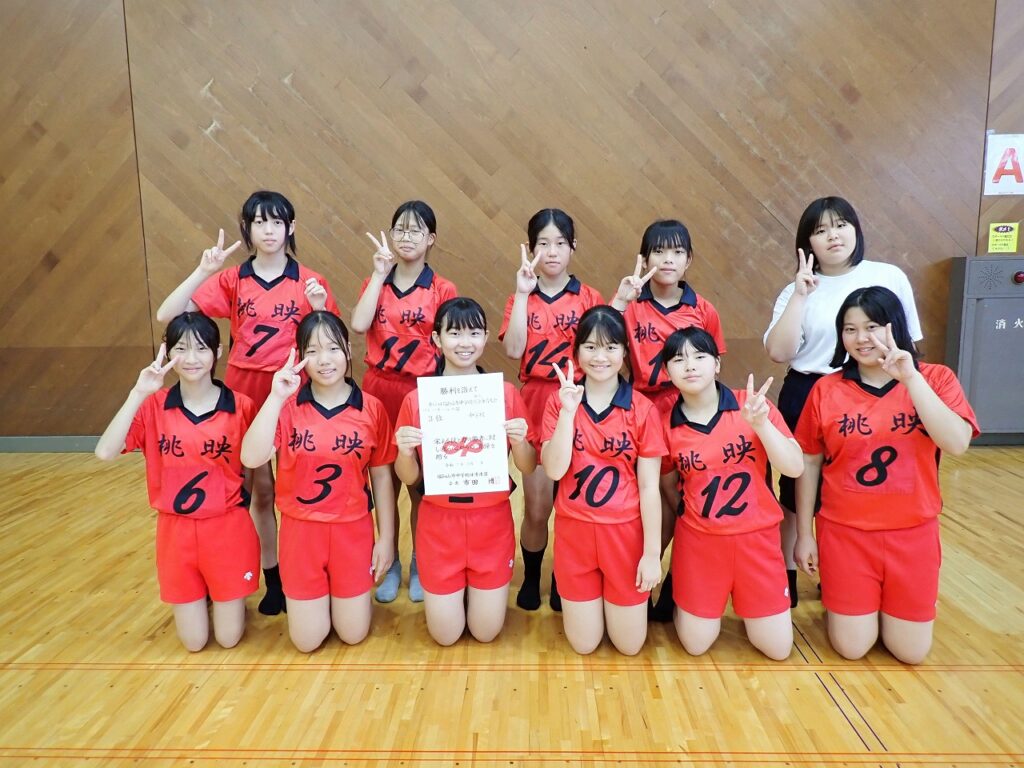 バスケットボール男女、野球部、卓球部男子は最後まで粘ったものの惜敗でした。卓球部女子は団体3位入賞を果たしました。バレー部は六人部中学校に勝利をしましたが、次の大江戦で惜しくも敗退しました。桃映中学校代表として剣道、柔道についても出場し、入賞を果たしています。どの部活も次の大会に向けて課題が見つかったのではないでしょうか。ここからの頑張りに大いに期待します。