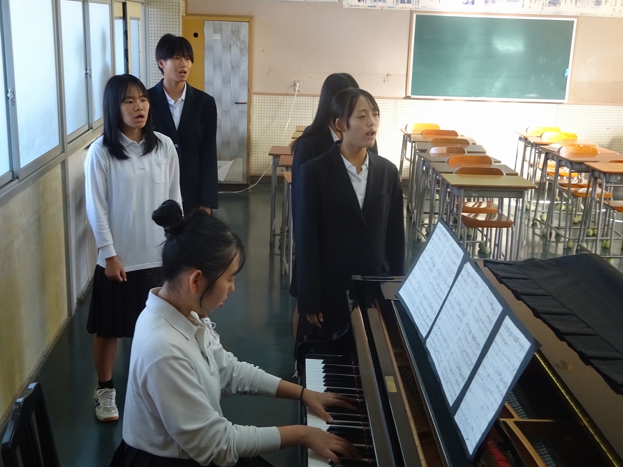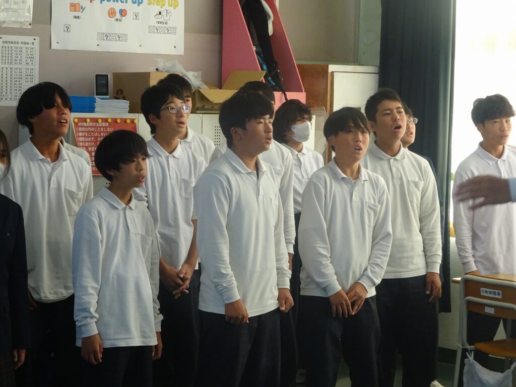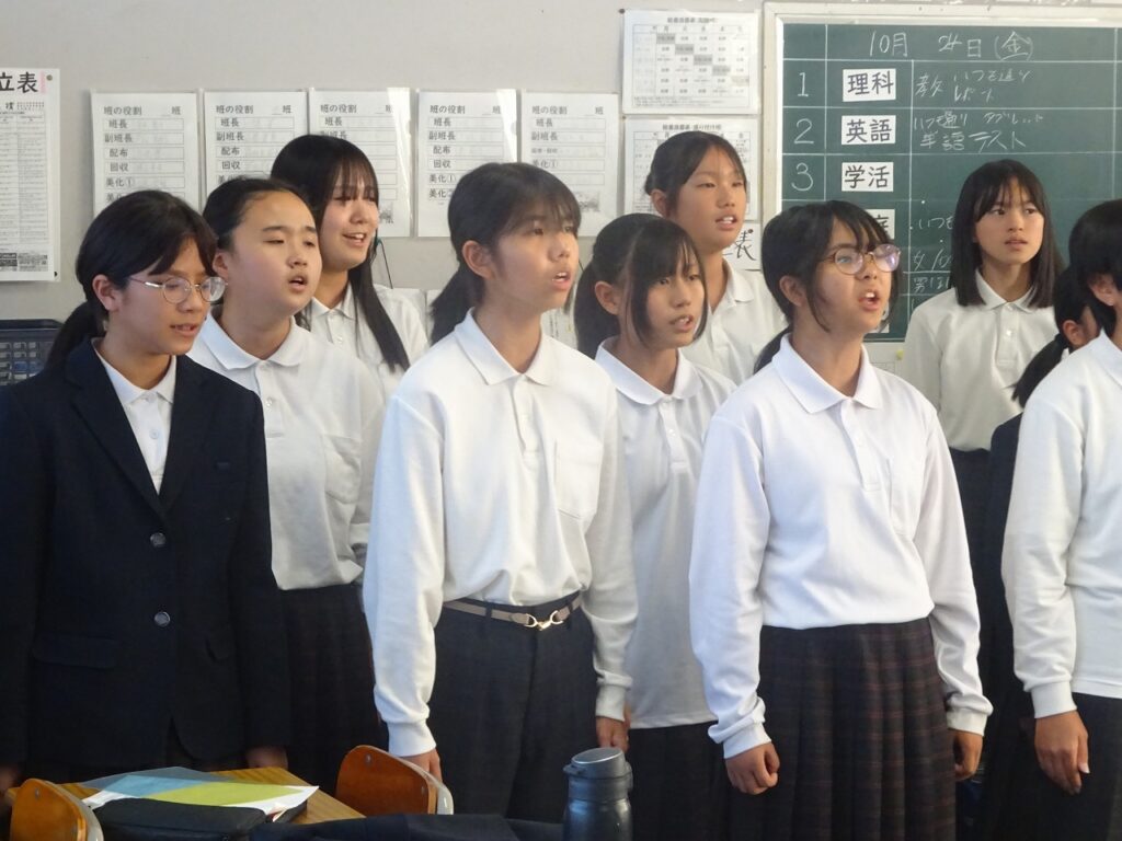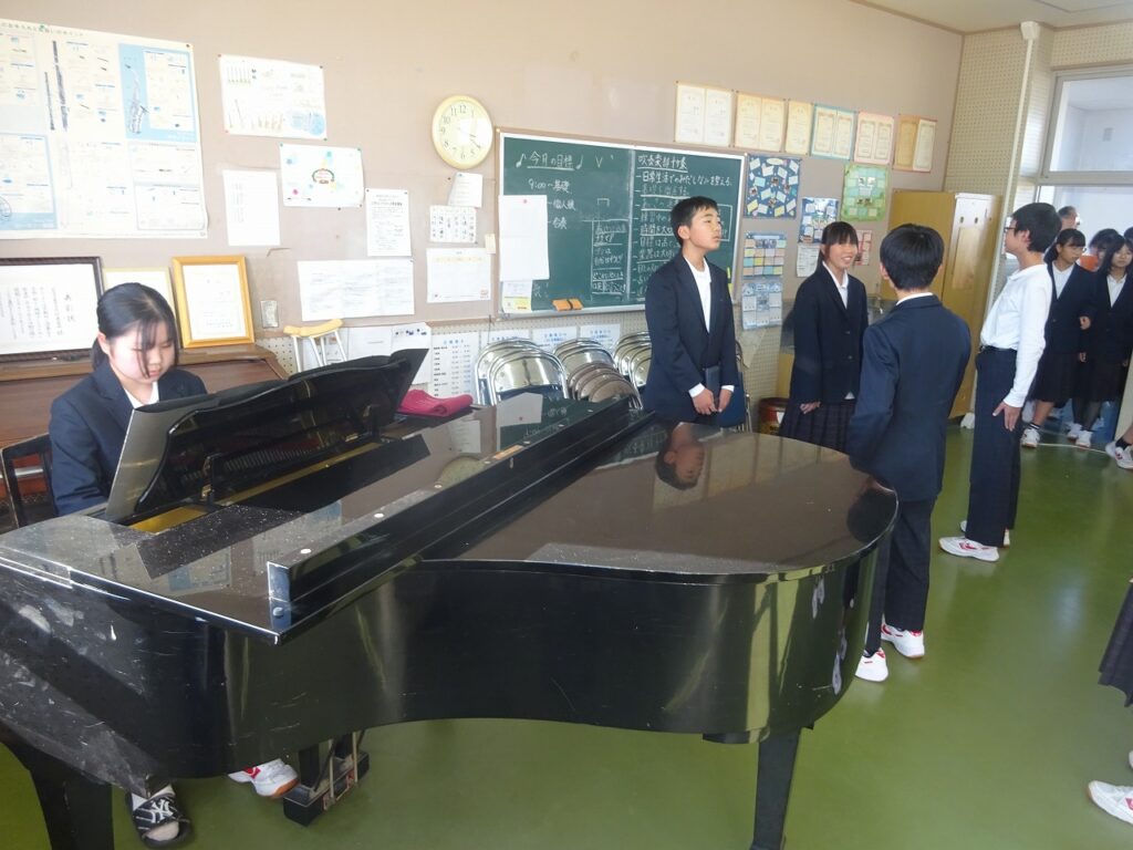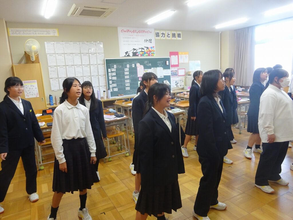10月23日(木)今週合唱練習が始まって3日目になりました。体育館、音楽室A、音楽室B、被服室、教室に分かれ、どの学級も合唱の歌声が響いています。合唱リーダーを中心に真剣に歌う姿、だんだんとそろってくる歌声に文化祭への期待が高まります。これからも楽しみです。