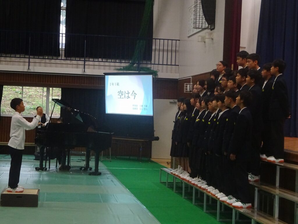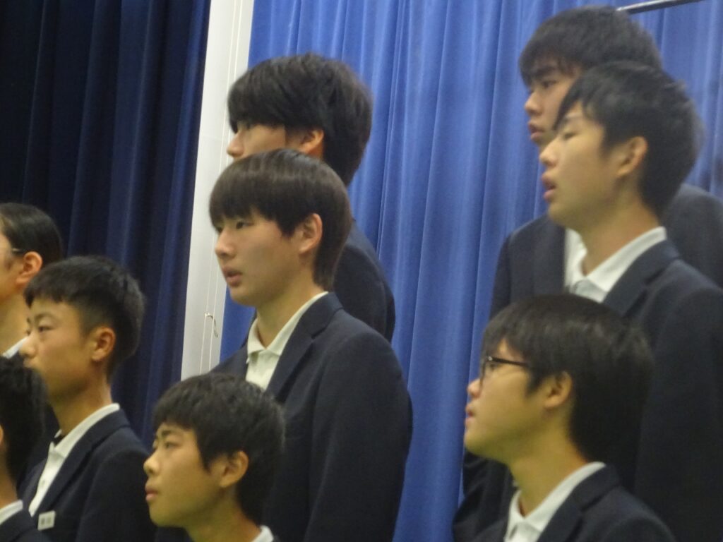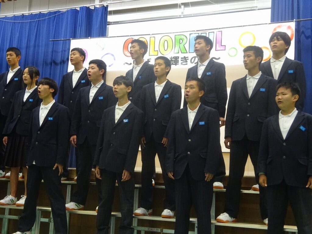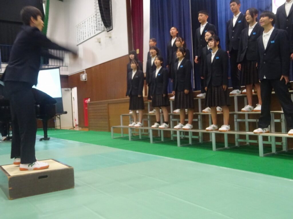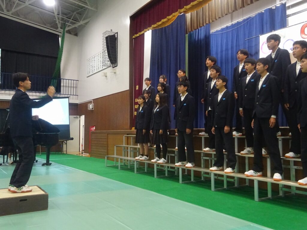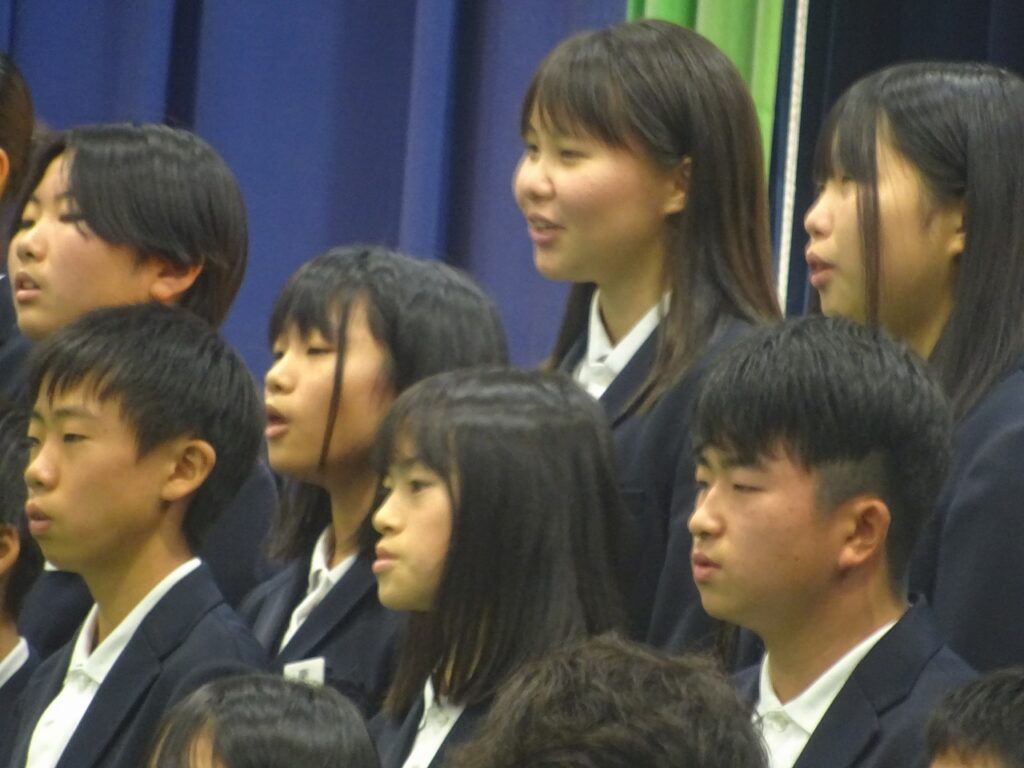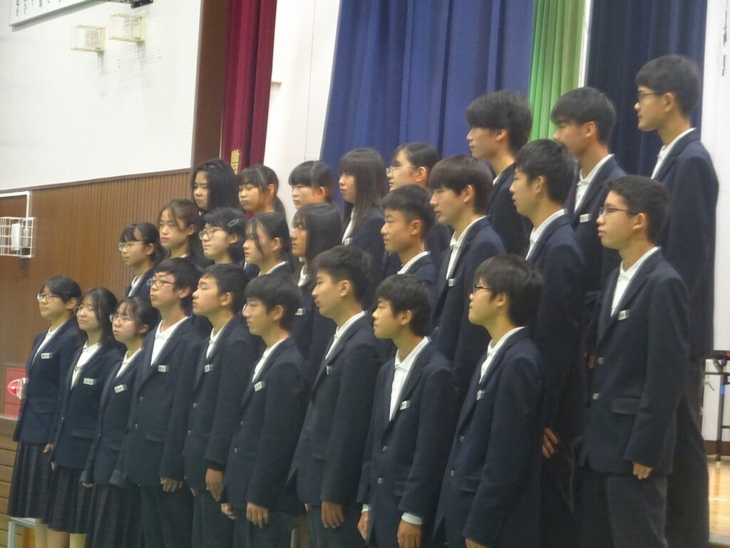 どの学級も金賞を目指し努力していたと思いますが、その勝利よりも、もっともっと価値のあるものをつかんだのではないでしょうか。副実行委員長の閉会あいさつの言葉の中にも「これまでのたくさんの人の支えがありました。」との言葉がありました。この期間必死になって学級を牽引してきたリーダーたち、合唱が得意・不得意に関わらず学級のために心を一つにして歌い続けたみんな、夏休みから努力を重ねてきた伴奏者や指揮者、それぞれの立場でみんなのため、学級のために支え合ったことが今日の素晴らしい文化祭になったと思います。同じ方向を向いて努力し続けたこと自体が大きな価値となるはずです。今後の学校生活に活かしてくれることを期待しています。