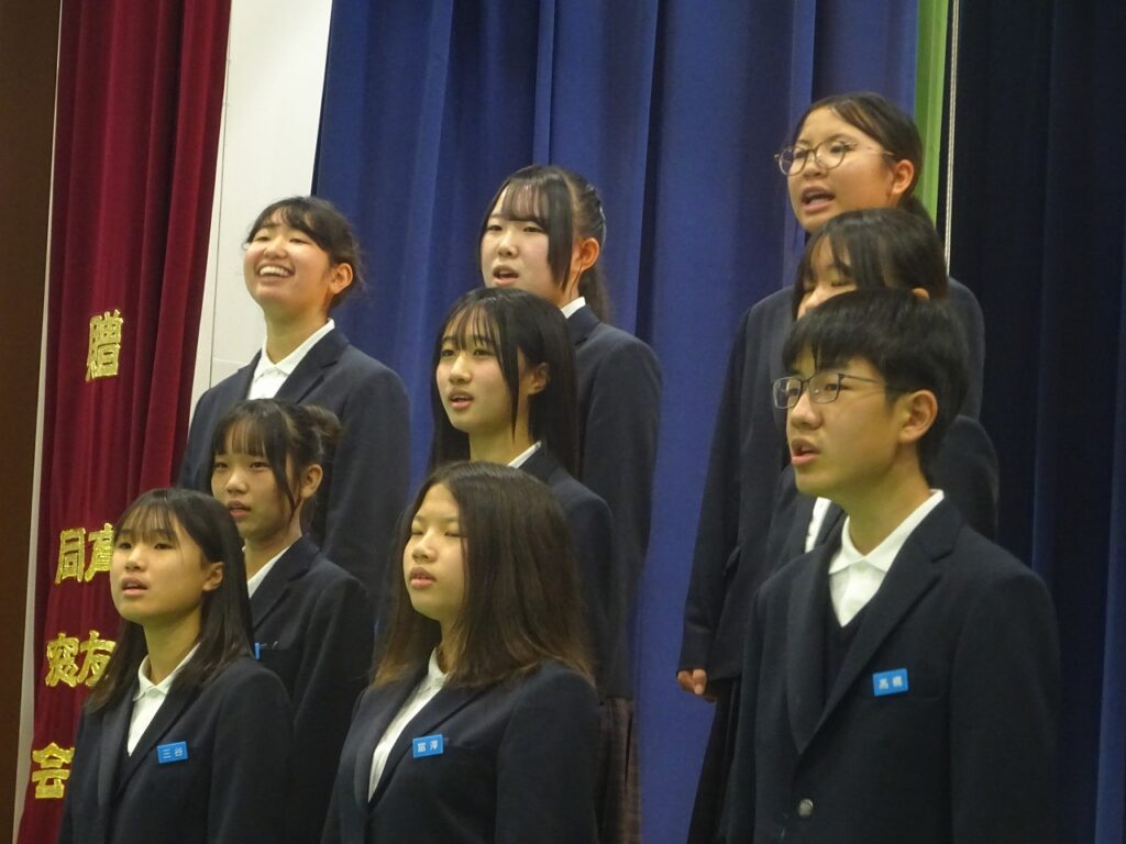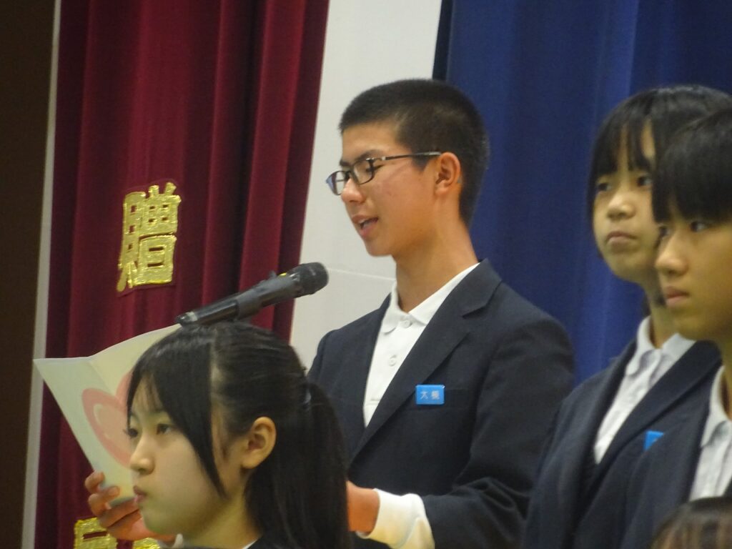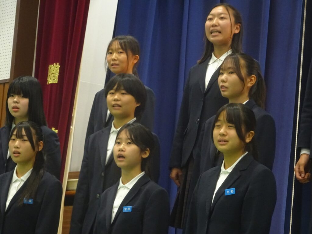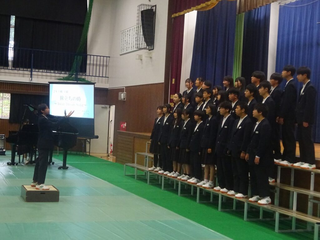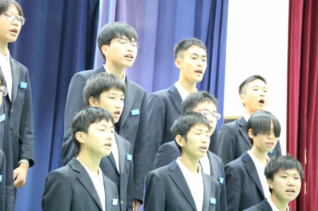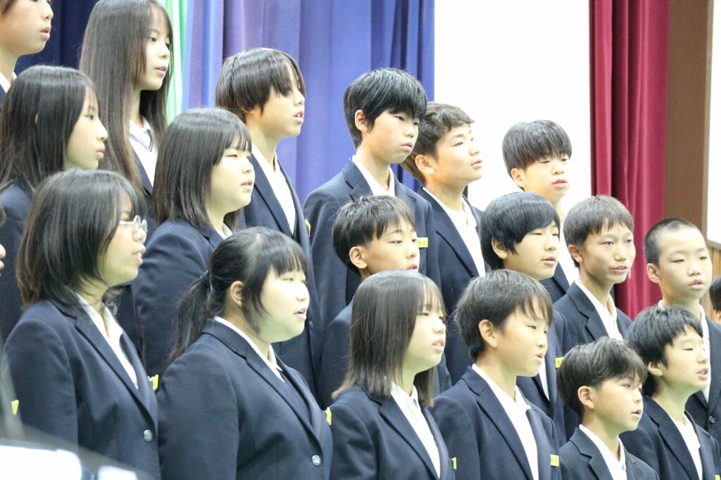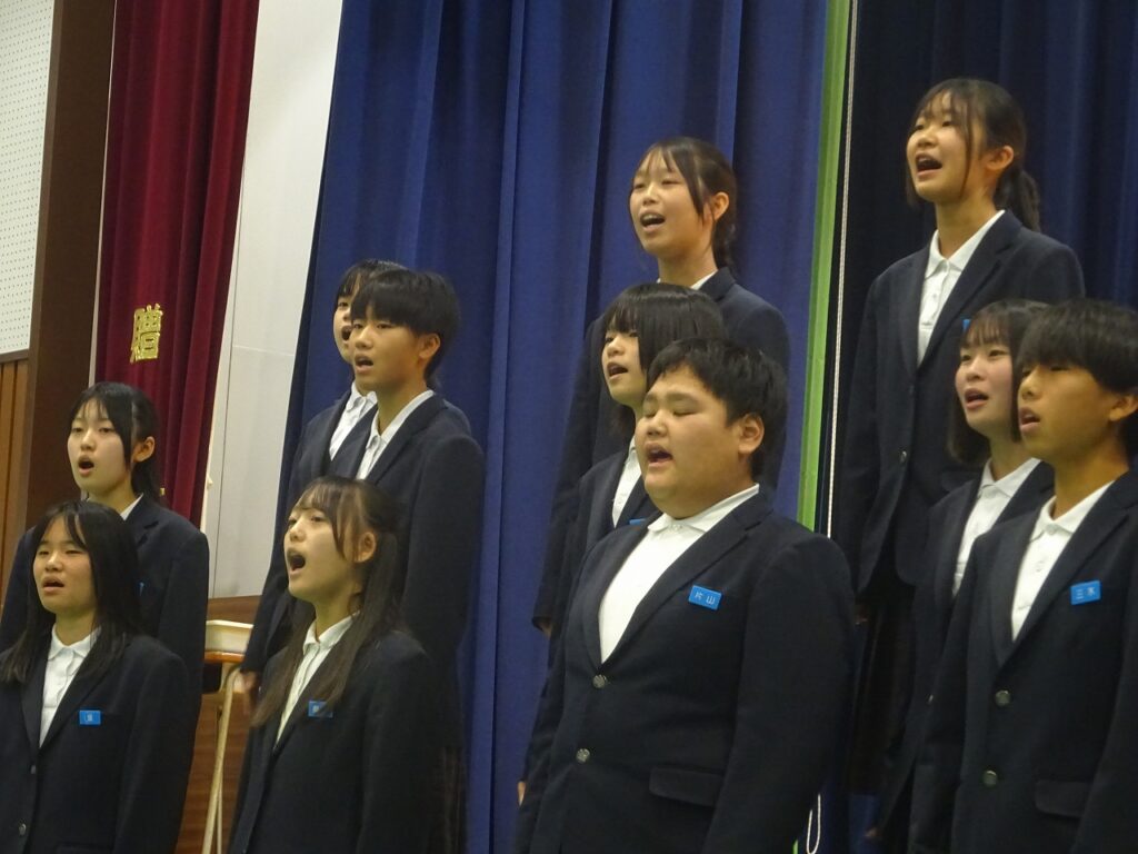どの学級も金賞を目指し努力していたと思いますが、その勝利よりも、もっともっと価値のあるものをつかんだのではないでしょうか。副実行委員長の閉会あいさつの言葉の中にも「これまでのたくさんの人の支えがありました。」との言葉がありました。この期間必死になって学級を牽引してきたリーダーたち、合唱が得意・不得意に関わらず学級のために心を一つにして歌い続けたみんな、夏休みから努力を重ねてきた伴奏者や指揮者、それぞれの立場でみんなのため、学級のために支え合ったことが今日の素晴らしい文化祭になったと思います。同じ方向を向いて努力し続けたこと自体が大きな価値となるはずです。今後の学校生活に活かしてくれることを期待しています。