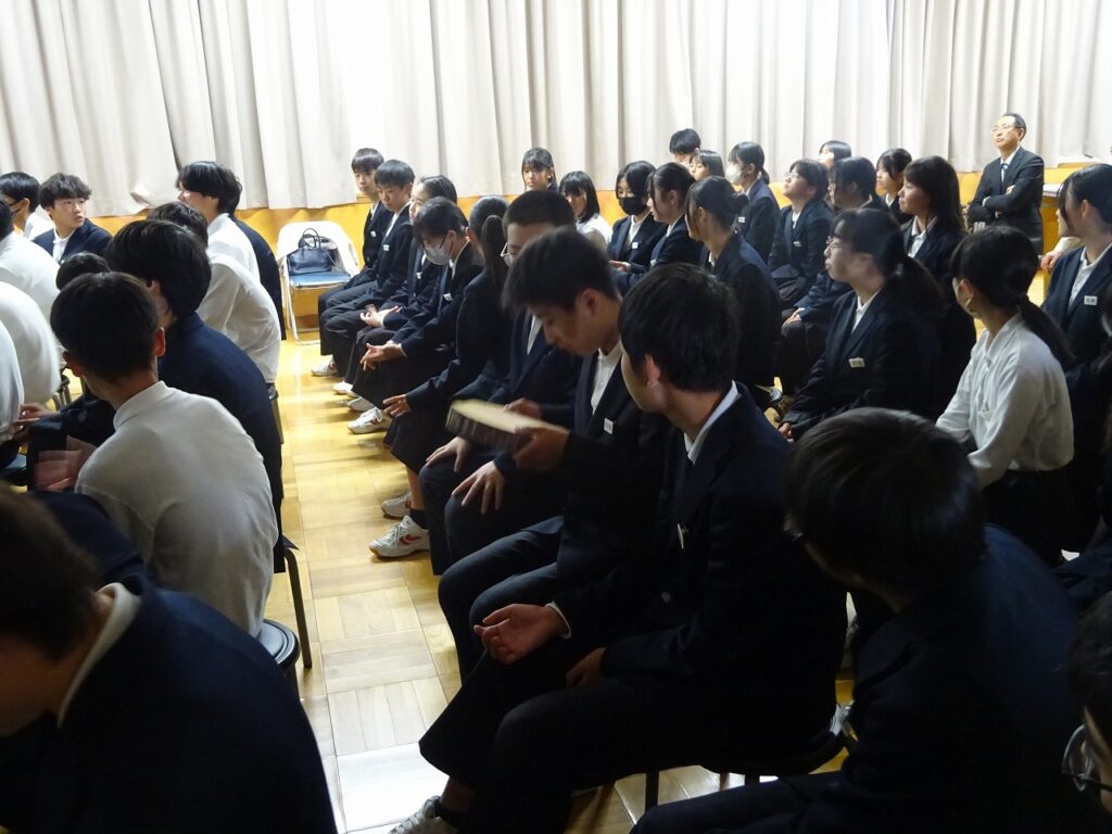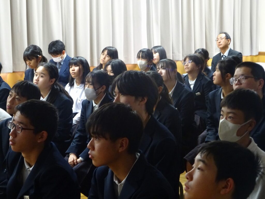 11月7日(金)2年生が防災講演会としてふるさとの森づくり講話として大堀区自治会、福知山地方森林組合の方を講師に招いて、講話をしていただきました。
