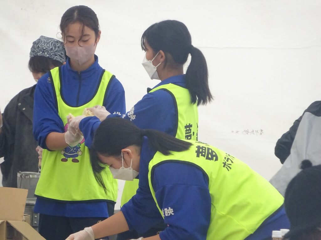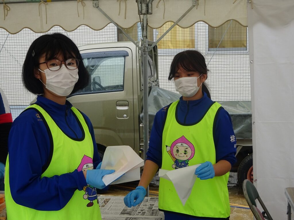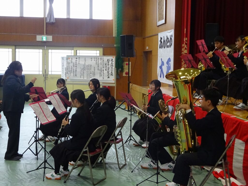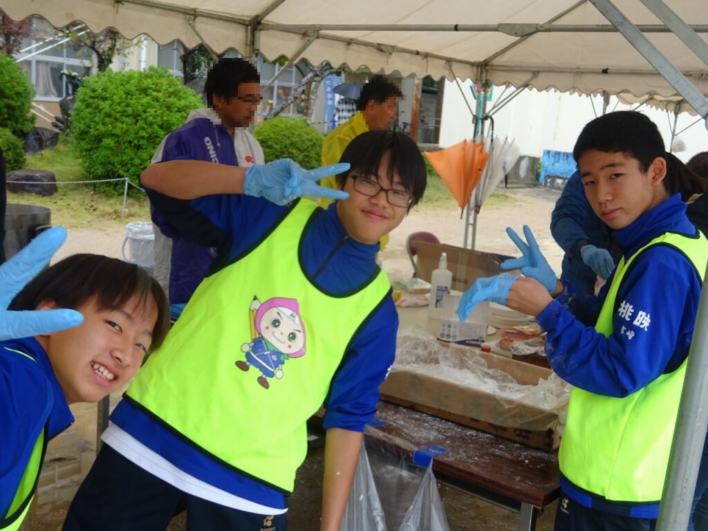 11月9日(日)雨が1日中降り続けた日でしたが、大正小学校で大正公民館50周年記念の大正公民館まつりが行われました。桃映中学校からは、吹奏楽部と夢・絆ボランティアが参加をしました。大正公民館50周年記念事業として1学期、全校生徒にもスローガン案をアンケートをしたスローガン発表もしました。吹奏楽部は、オープニングを務めました。緊張もある中でしたが、先日の中学校文化祭に引き続き、堂々としたステージ発表でした。また、ボランティアの15名は、飲食スペースの販売補助を中心に活動しました。桃映中らしく、爽やかに活動している姿が印象的でした。