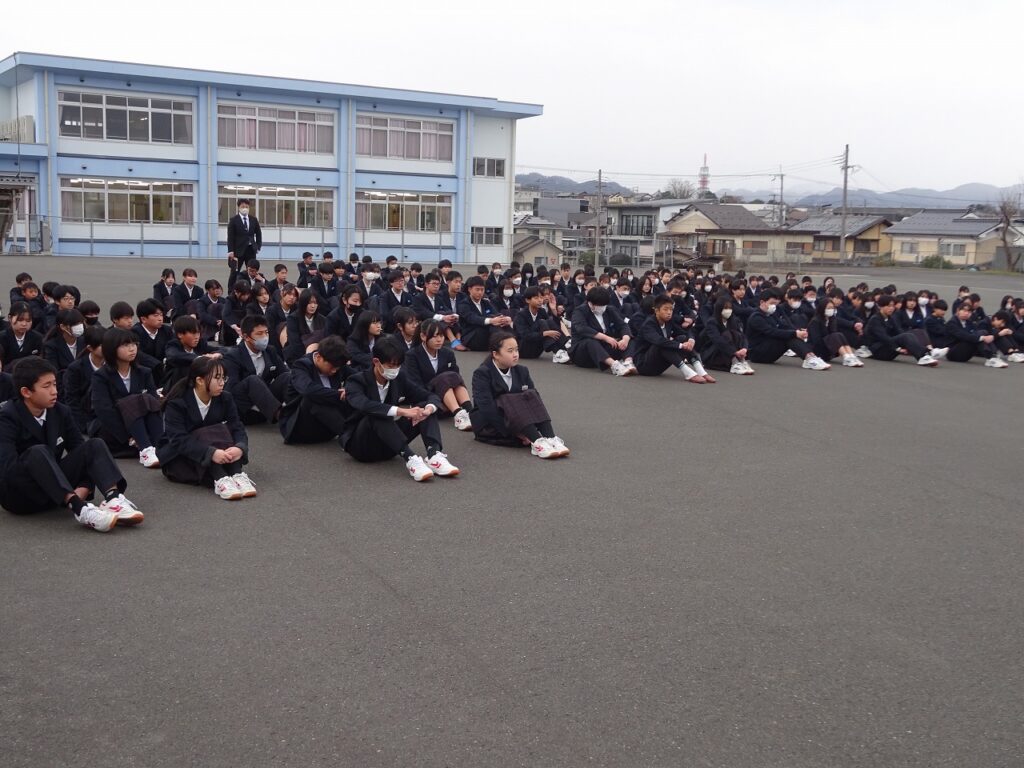 1月14日(水)全校で地震を想定した避難訓練を実施しました。1時間目が始まる前に避難訓練をしましたが、混乱もなく素早く静かに中庭に避難できました。避難訓練後、各教室で過去の地震からの教訓を学びました。最近でも地震関連のニュースは日本各地であります。いつどこで災害に遭うかはわかりません。これを機に考え直す機会にしましょう。