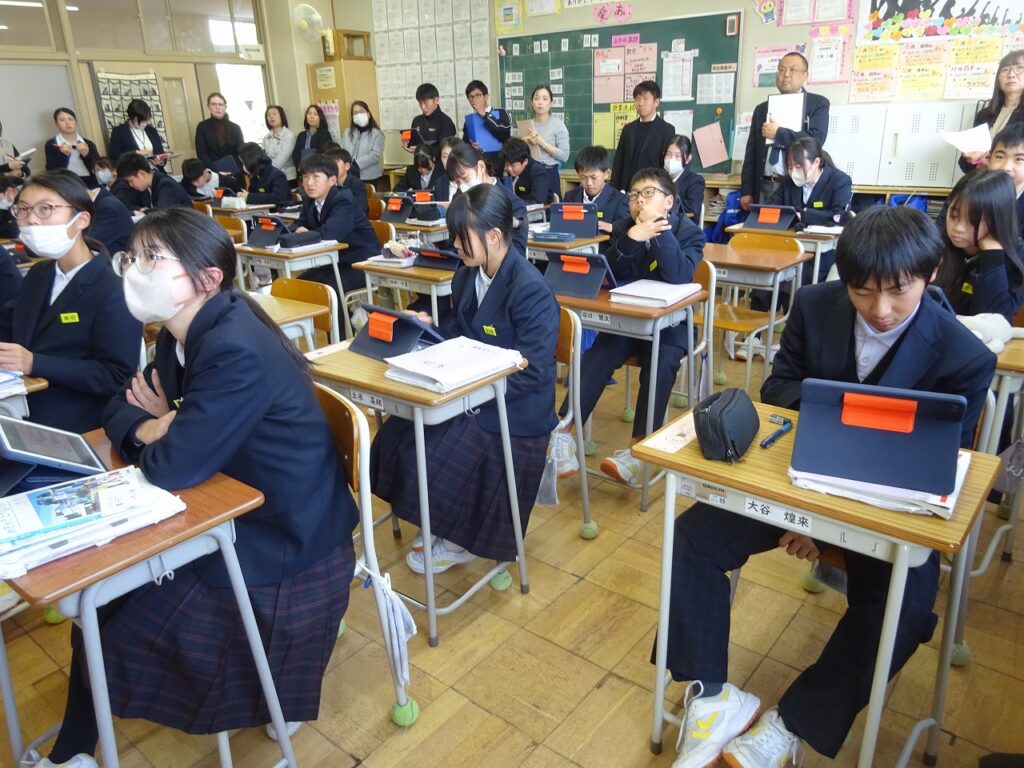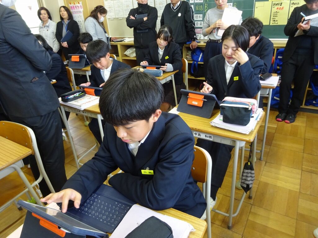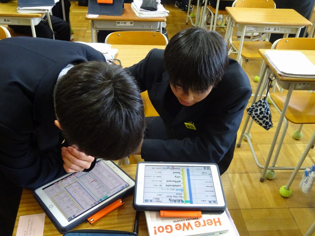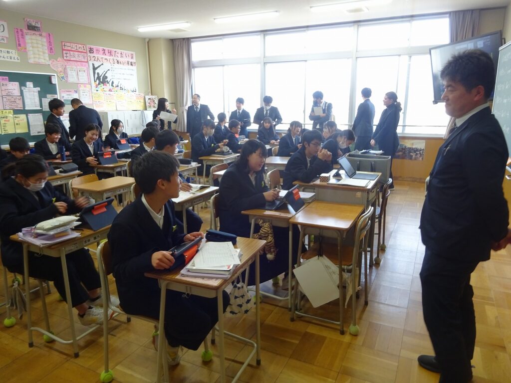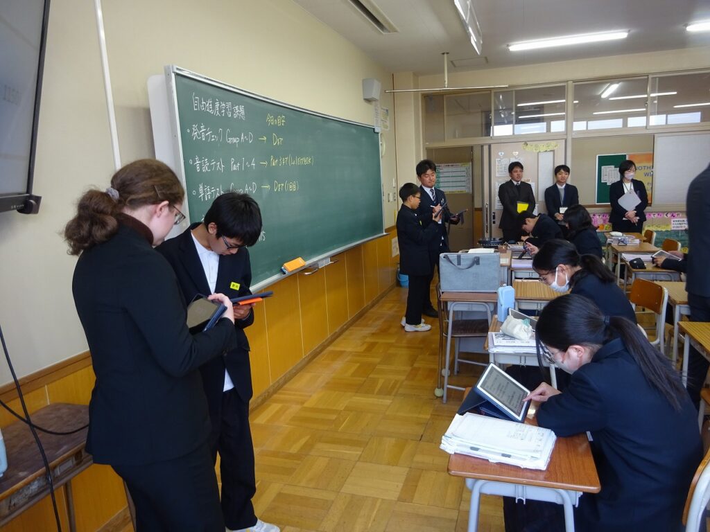 1月16日(金)桃映中学校は来週から定期テストが始まるので授業にも真剣さが増しています。2学期と同様に学校生活を頑張っている様子が見られました。1年生の英語の授業では生徒自身が英語の単元目標に向けて1人1人が必要な学習手段を選びながら頑張る様子が見られました。