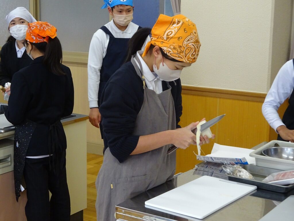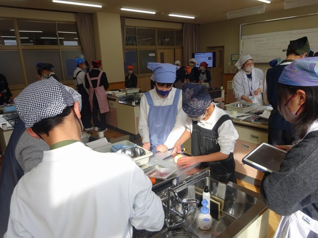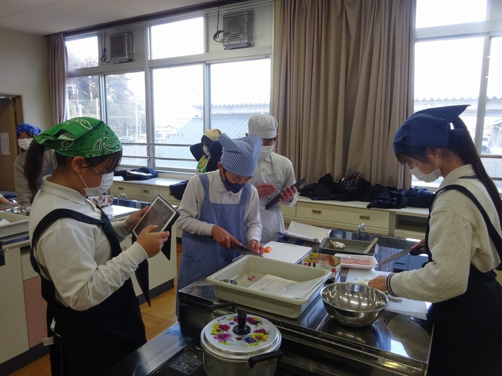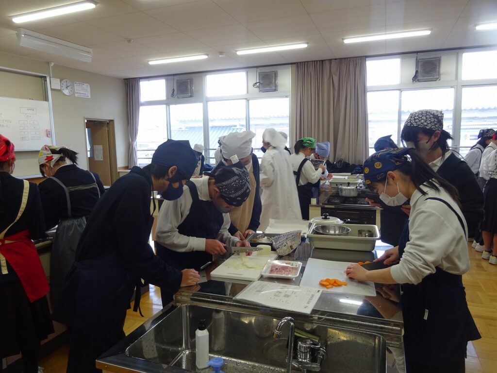 豚汁で心も体も暖かに 日誌 Twitter Facebook はてブ Pocket LINE コピー 2026.01.30 来訪者カウント 49 1年生調理実習 1月29日(木)1年生の家庭科では「豚汁」を作りました。野菜をさまざまな形で切るのに悪戦苦闘しました。班で協力しながら調理を進め、食事後は心も体もほっかほかで温まりました。美味しく、みんなで食べきりました。