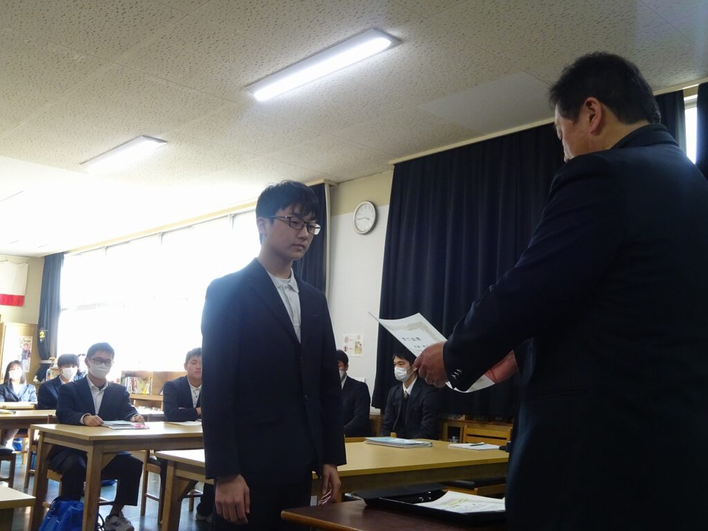 2月20日(金)30回にわたる令和7年度地域未来塾が閉講式を迎えました。自ら積極的に学びたいと参加した3年生が9月から週2回のペースで基礎から学びました。閉講式では1人1人に修了証を手渡ししていただき、生徒たちもやりきった表情を見せていました。生徒から感謝のメッセージを渡し、学習支援員さんからはこれからの将来を応援をしていただき、人と人との温かいふれあいを再確認した閉講式でした。学習支援員の方々には本当にお世話になりました。ありがとうございました。