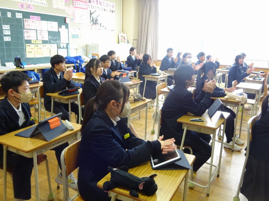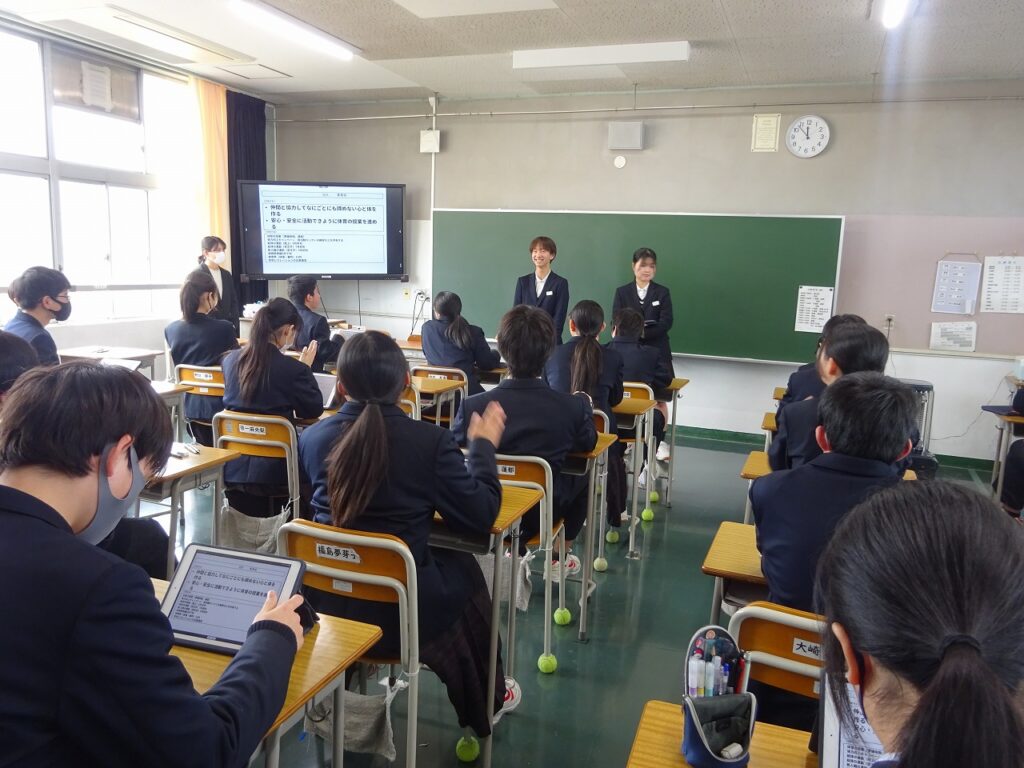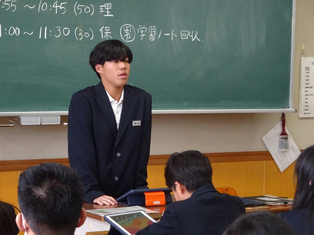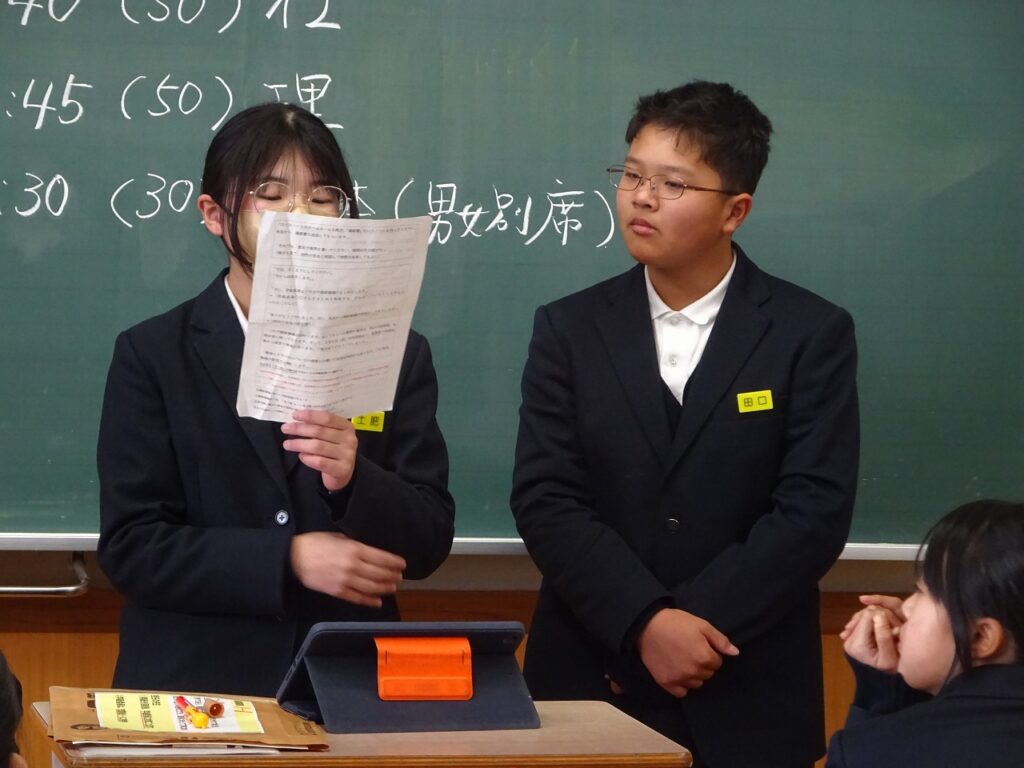 2月27日(金)1,2年生は今日まで期末テストでした。テスト後の学活で来週6日(金)に行われる生徒総会に向けて、生徒会本部、各委員会より来年度の方針提案を行い、意見、質問を集約しました。
