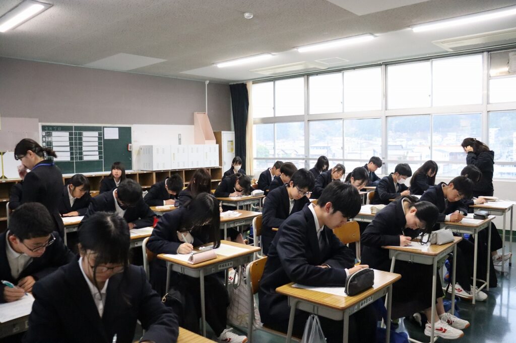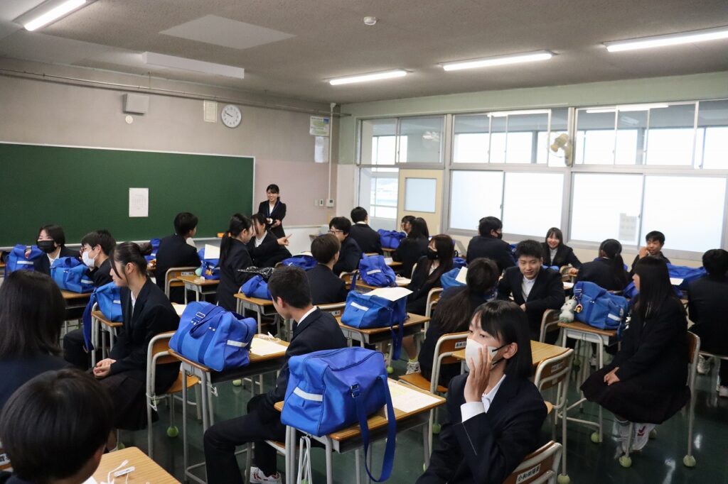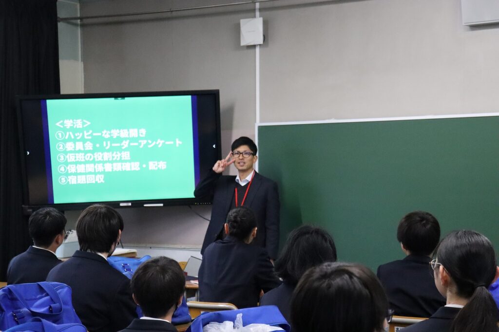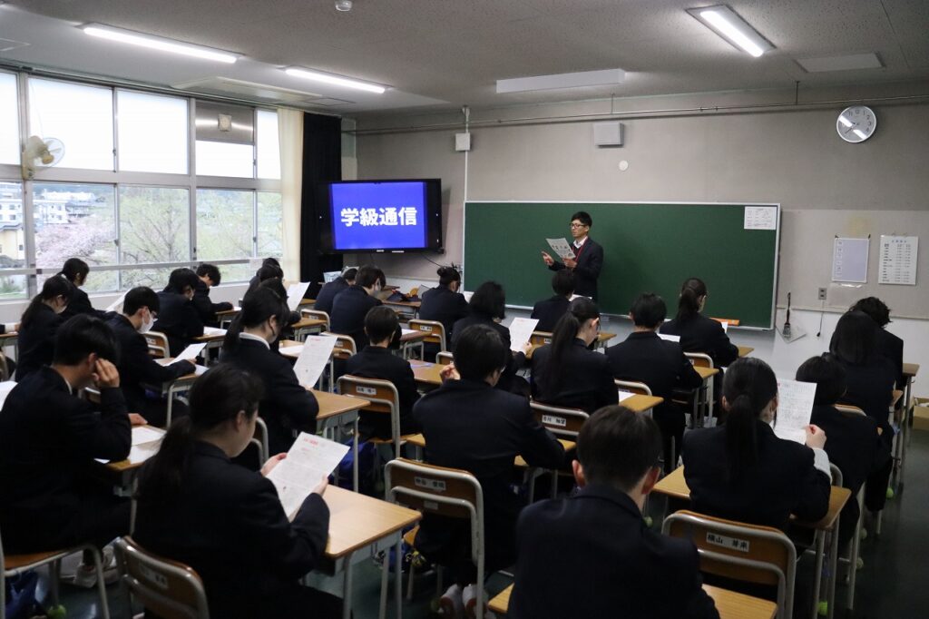 担任からは、最高学年としての自覚と、この1年間をどのような学級にしていきたいかという思いが語られ、生徒たちは真剣な表情で耳を傾けていました。生徒一人ひとりの表情からは、学校を引っ張っていこうとする意欲が感じられ、頼もしさが伝わってきました。これからの活躍が楽しみです。